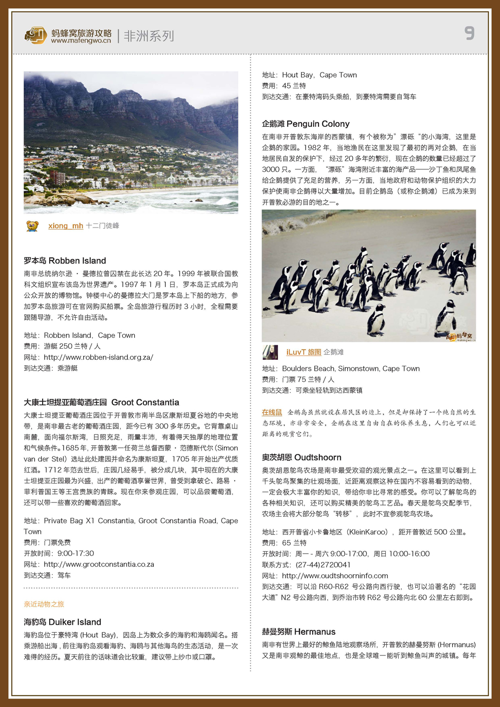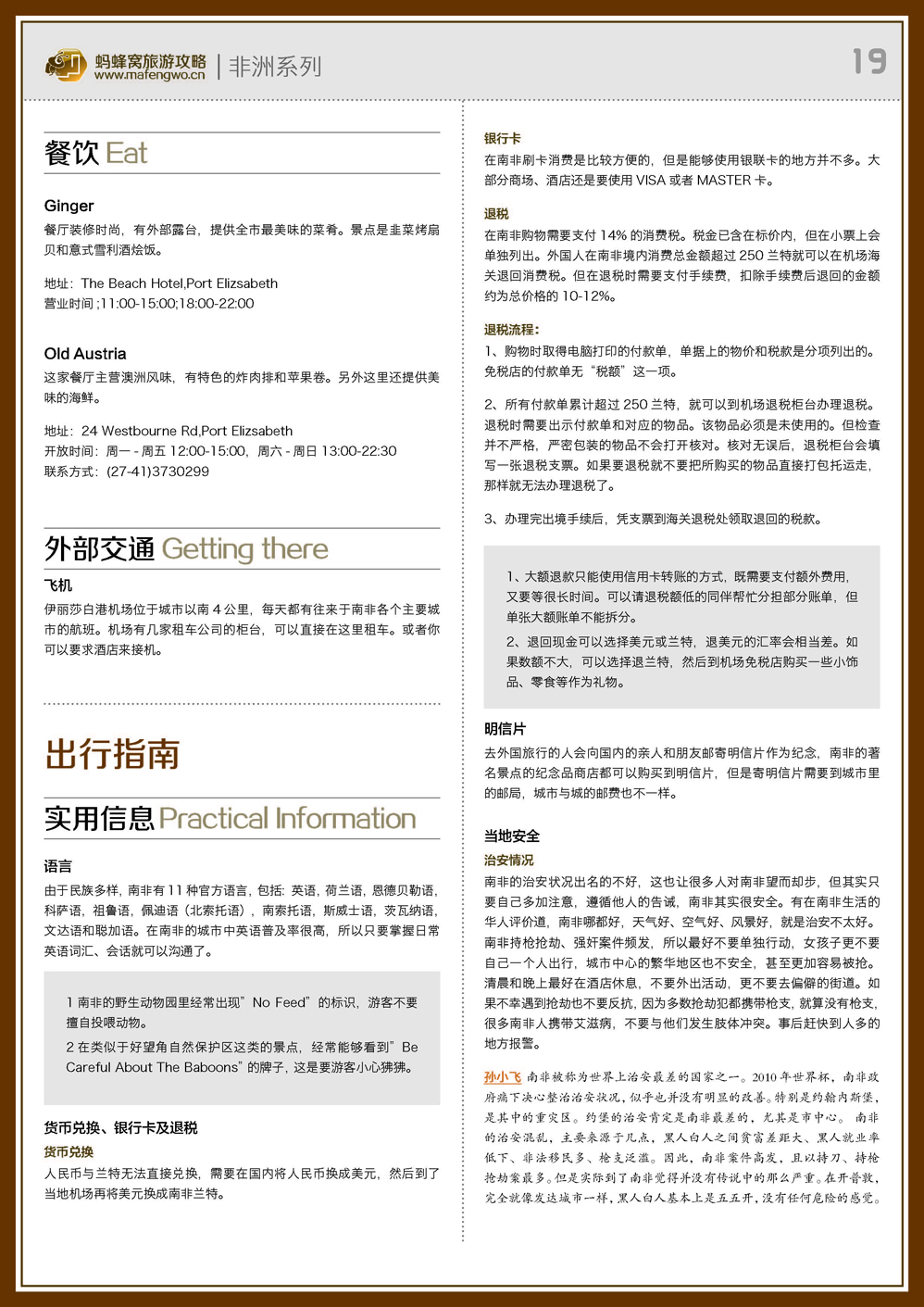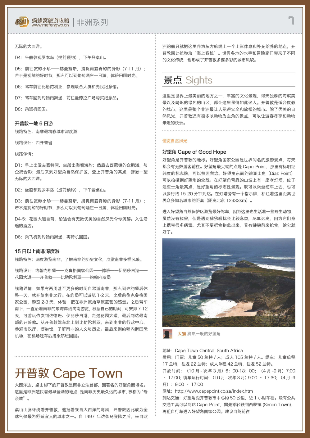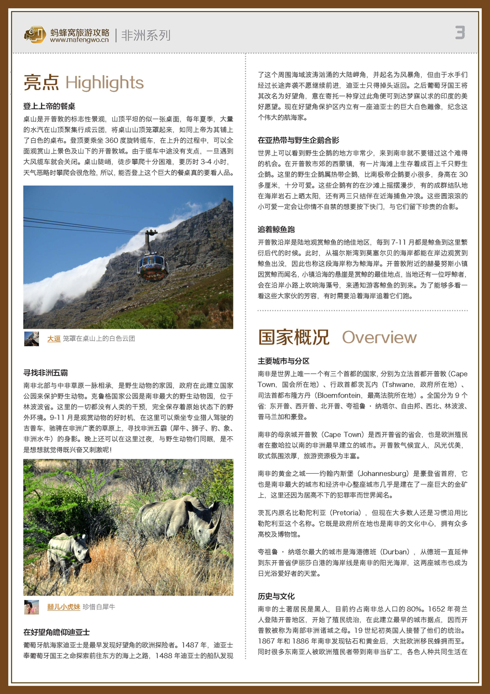 简介素有“彩虹之国”美誉的南非,自然风光绮丽,动植物种类繁多。游历一国等于环游世界,是南非的最佳写照。南非拥有富饶而多元化的文化特色、野生动物、完整的都市乡村规划、一流的道路建设、清新的空气、热情且好客的民族,加上比欧美国家更多的投资机会,吸引了成千上万的观光客和企业家前往一探究竟。