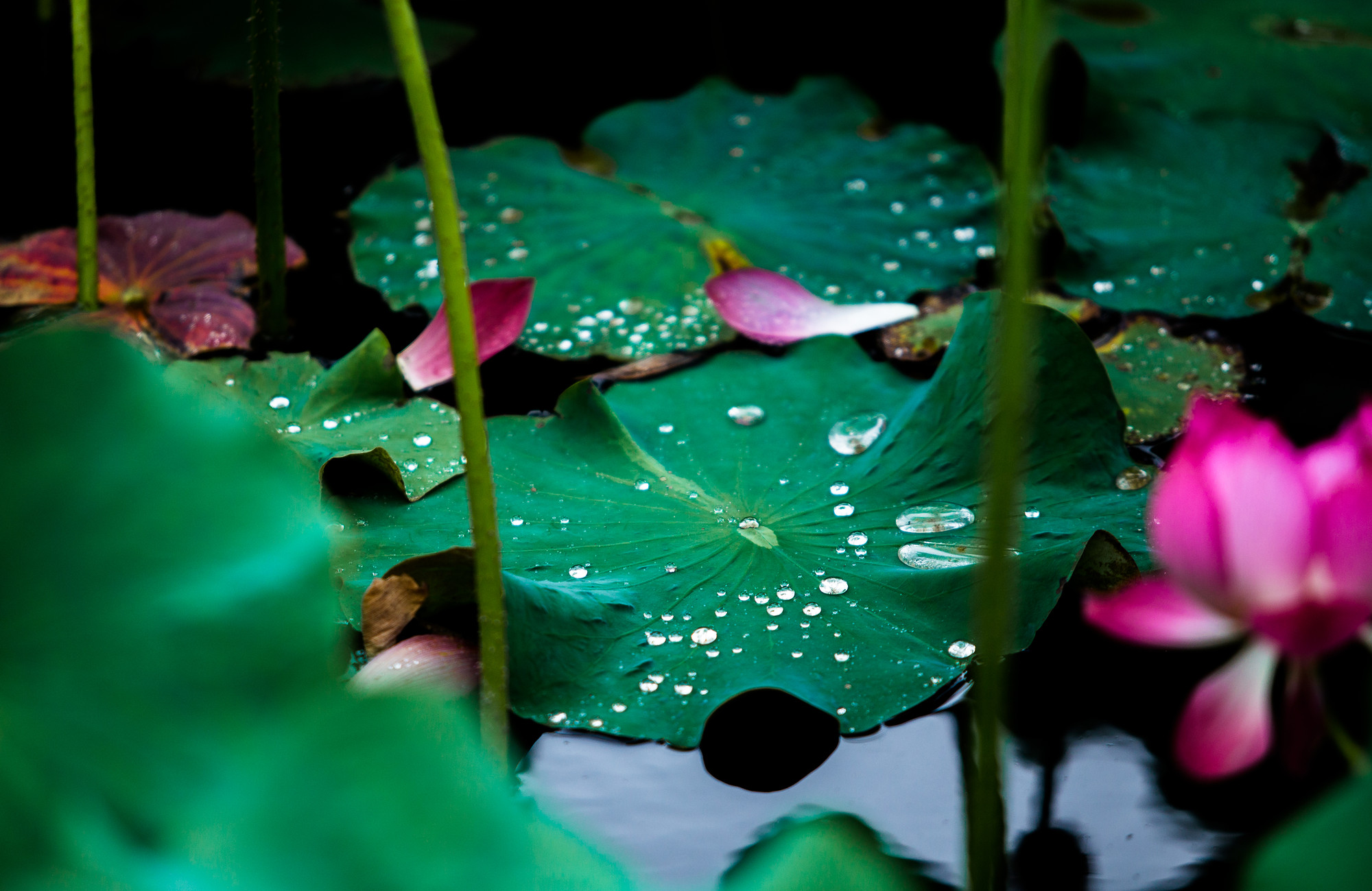 无数把绿色的小伞层层起伏,向着远方的天边伸展,水灵灵的荷花掩映其中,随夏风轻轻摇曳,与白云、蓝天相映成趣,千姿百态,楚楚动人。