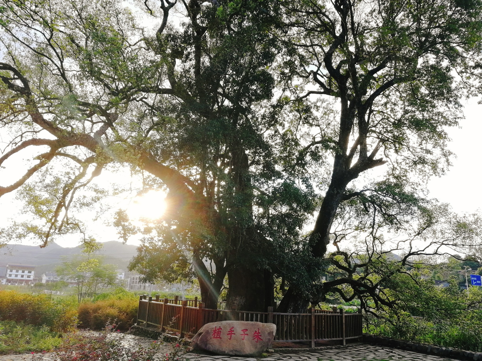 紫阳楼是典型的徽派建筑,房前左手边,有朱熹栽种的香樟树,树中空可容一个人。