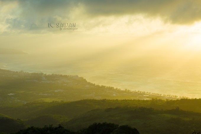最高峰(塔帕丘):海拔为473米,是塞班岛最高的地方,从这里可以360度俯瞰塞班岛以及巨大耶稣像。可以看到两个截然不同的大海,一边是太平洋,深邃的蓝,一边是菲律宾海,颜色变幻莫测,还可以看见军舰岛。