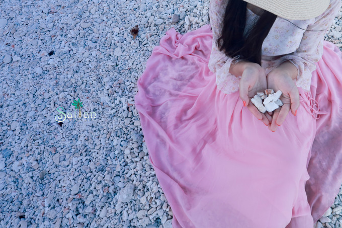 沙滩上有很多被海水冲上岸的珊瑚,非常的漂亮,这里的海水也非常的蓝,映着蓝蓝的天空,真的那种美无法用言语来形容。
