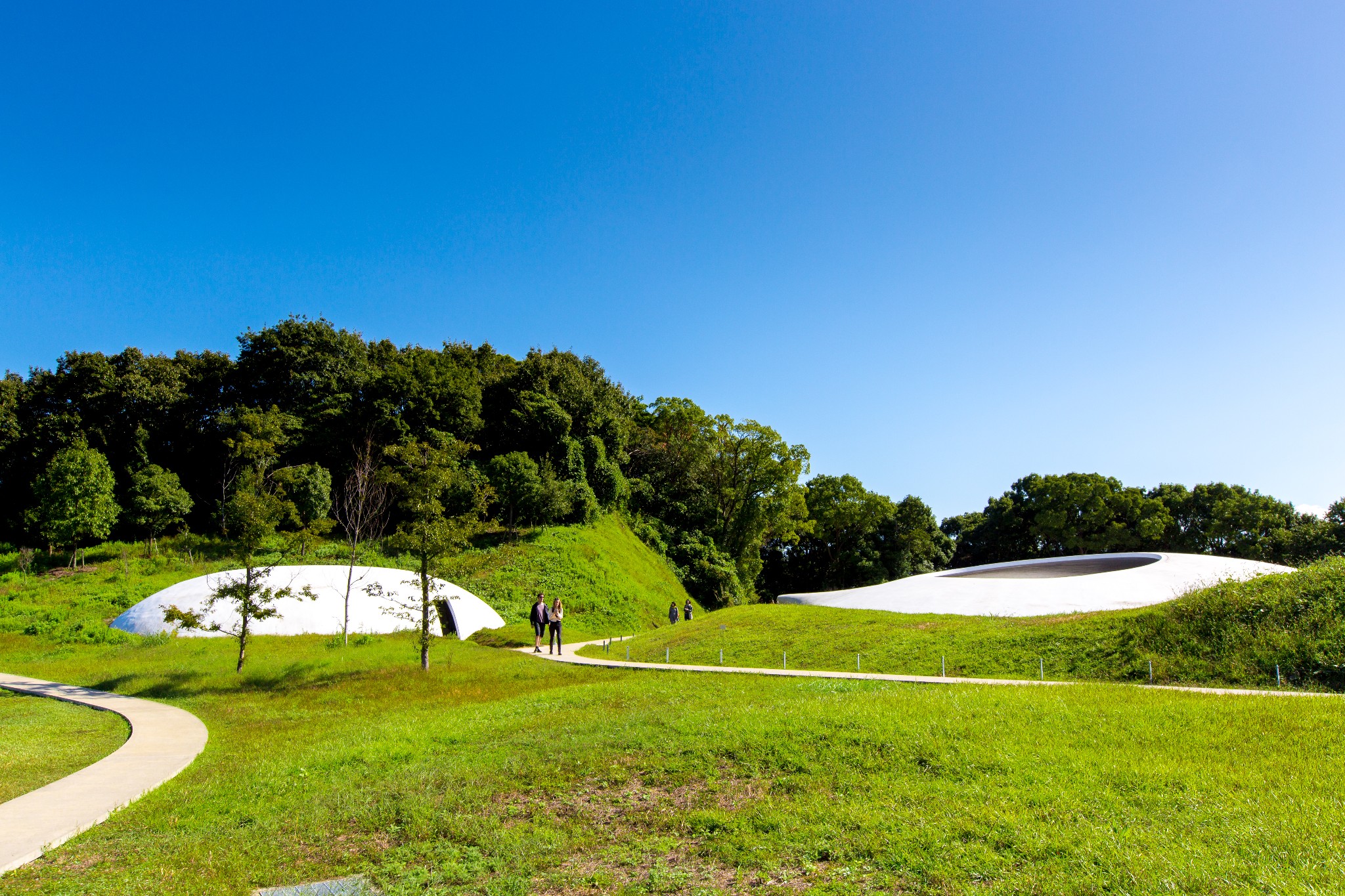 西泽立卫设计的丰岛美术馆,外观像山间扬起的白色床单,人少的时候去体验最棒。不同于一般的美术馆,风道美术馆的主角不是绘画与雕塑作品,而是海风、阳光与空气,自然与艺术的巧妙结合。