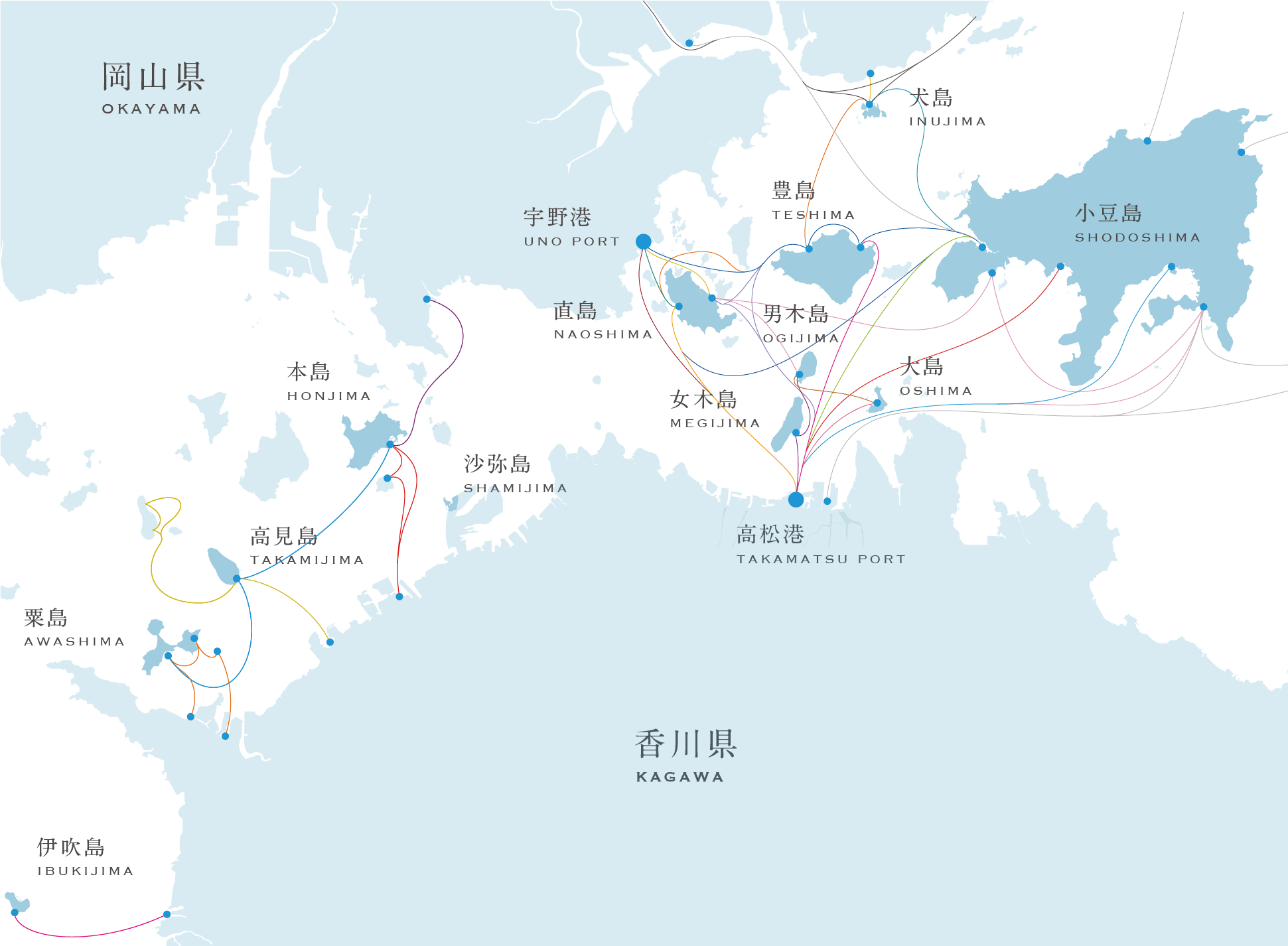 2个港口:高松港周边、宇野港周边