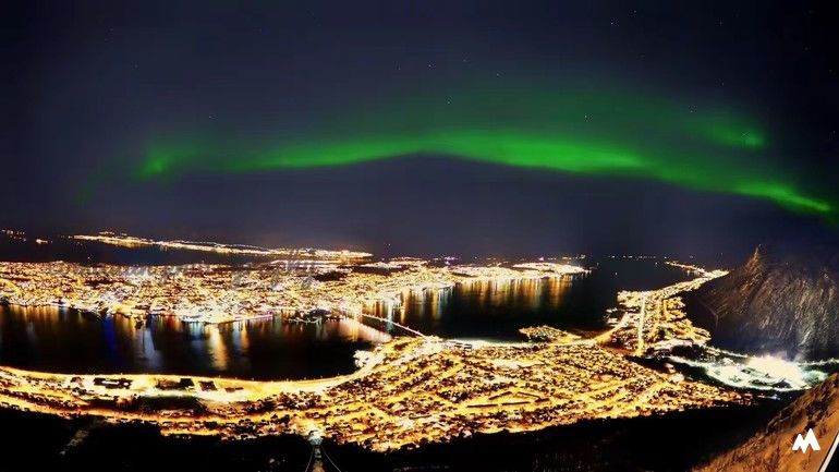 特罗姆瑟缆车山顶站的观景平台是离特罗姆瑟市中心最近的观看北极光理想之地。北极光出现的时间大约从9月至来年4月的夜间6点至凌晨2点之间,所以搭乘晚班的缆车,就有机会看到神秘的北极光。