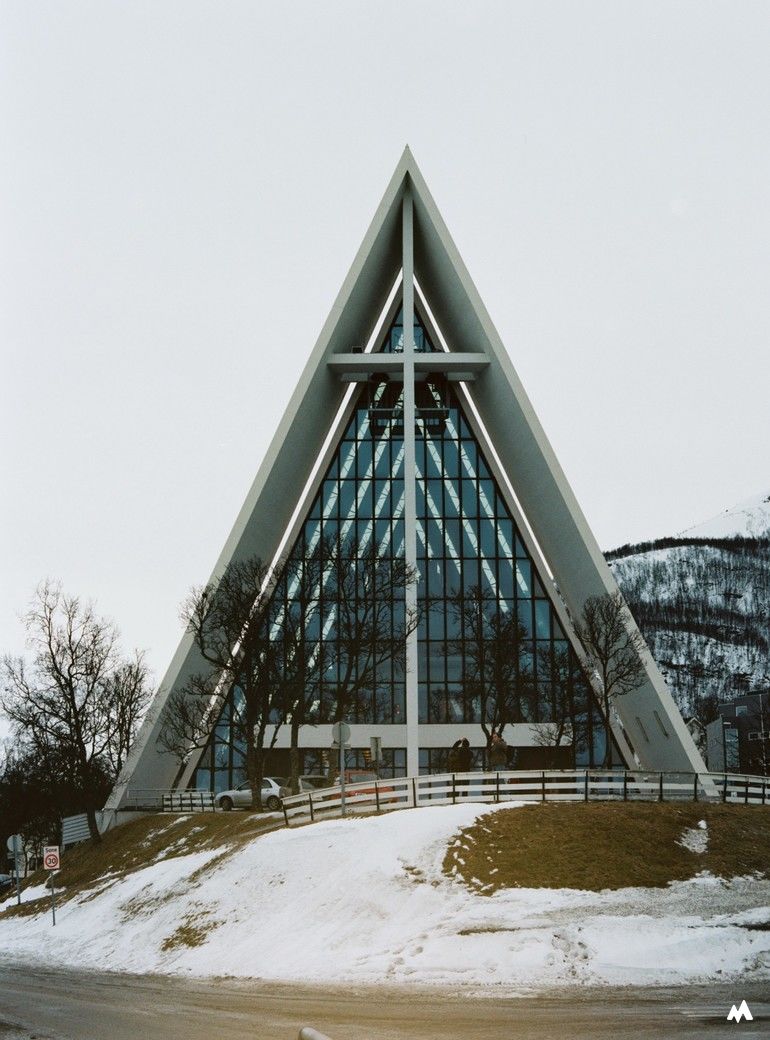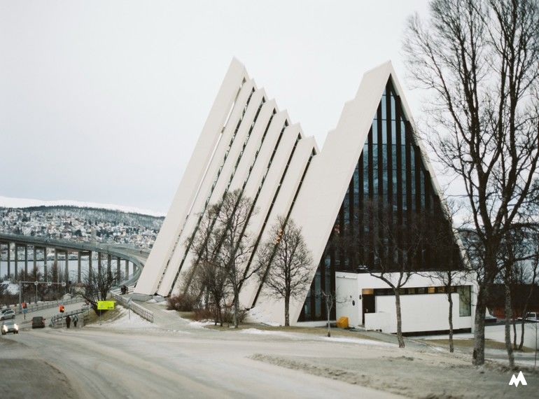 大教堂始建于1965 年,位于市中心对面。奇特的三角形造型设计灵感来源于挪威北部的绮丽景观,教堂两侧拥有北欧最大的条状彩色玻璃窗,它们完美地利用了极昼阳光的入射角度,使得夏季午夜的光线能够从缝隙中透射进来。每年夏天,这里还会举行盛大的“午夜太阳音乐会”。
