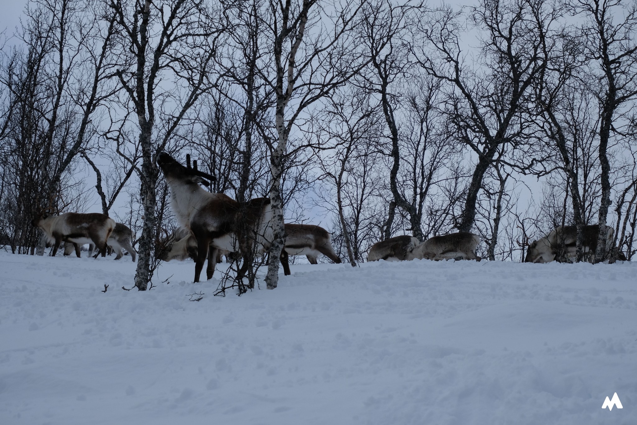 哈士奇和驯鹿是北欧大地上常见的动物,也是北欧人的生活伙伴。哈士奇一开始是被北极土著居民饲养,用于运输、捕猎、守护村庄。而今,哈士奇仍被作为交通工具在极地白雪里奔跑。驯鹿则从中石器时代开始几乎为萨米人提供了一切生活所需:高蛋白的驯鹿肉、保暖的皮毛和运输工具。