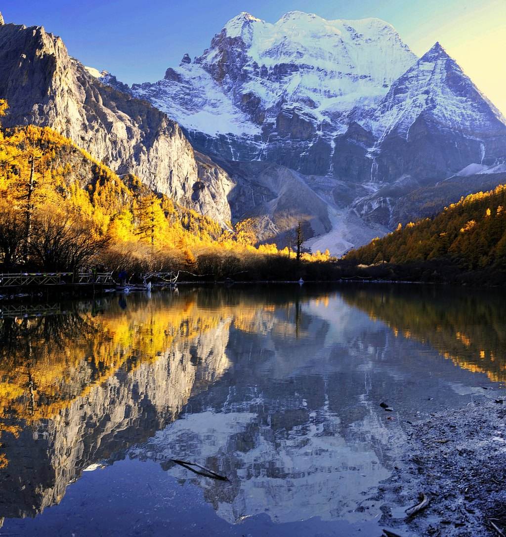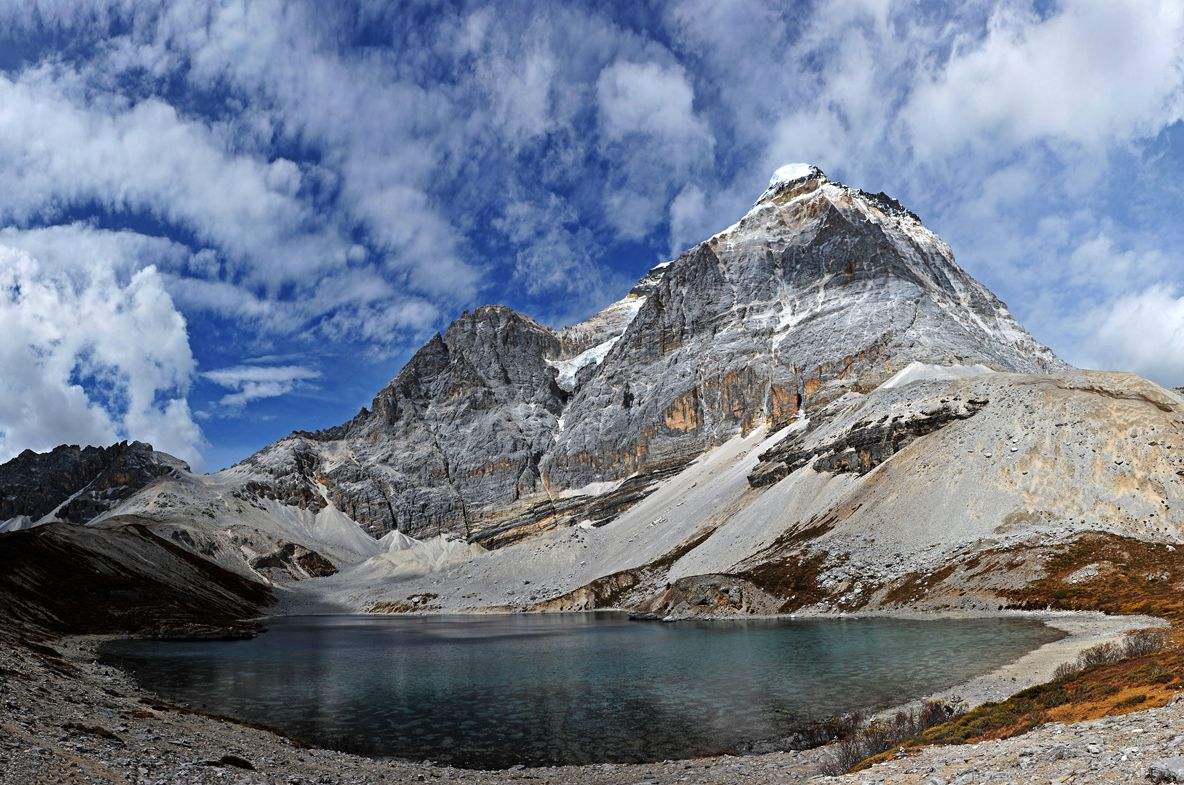 到达洛绒牛场后便可以欣赏到央迈勇的身姿,从洛绒牛场前往牛奶海的途中,央迈勇越来越近,也越来越让人震撼,在牛奶海可以拍摄央迈勇的倒影。