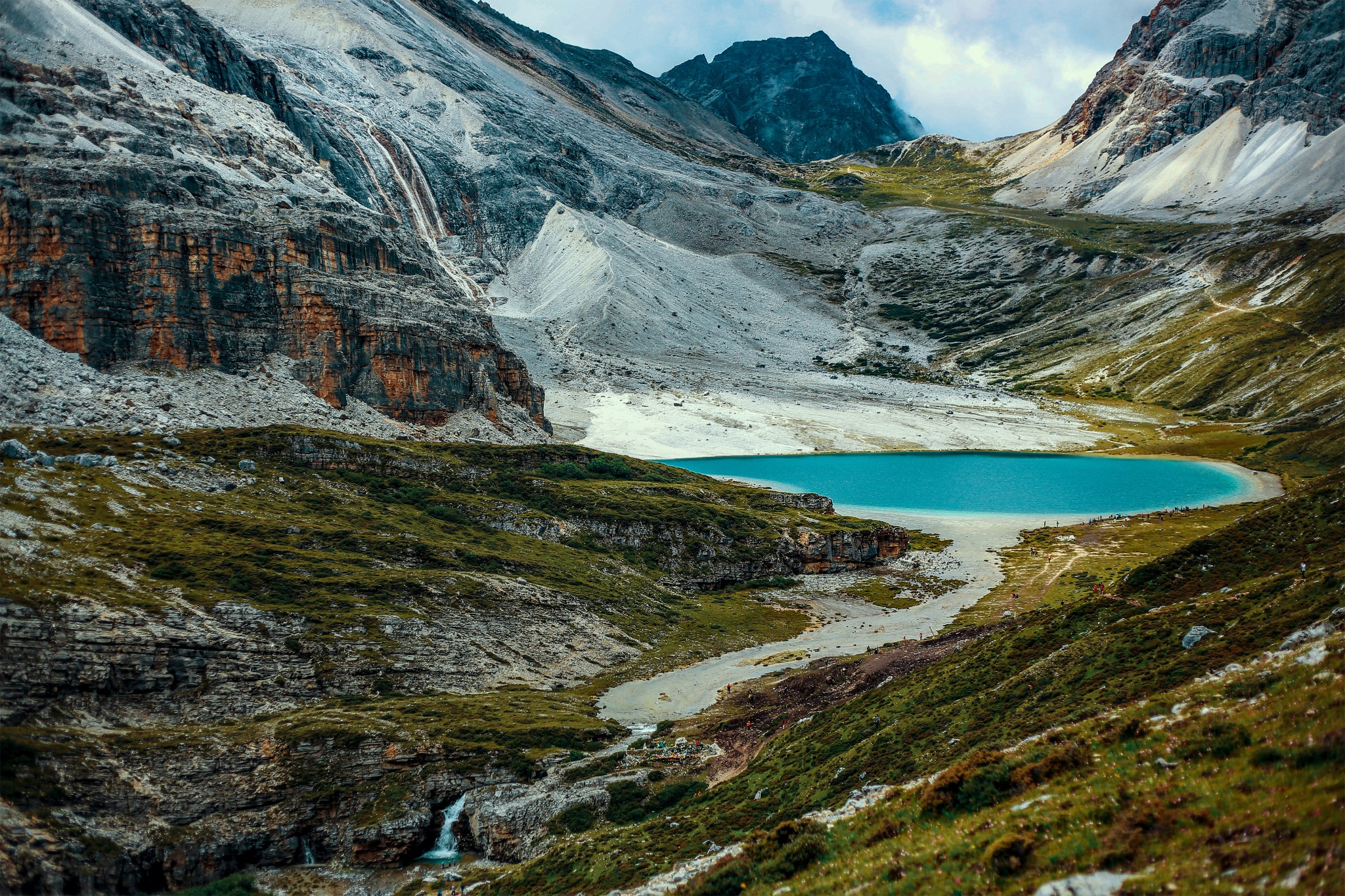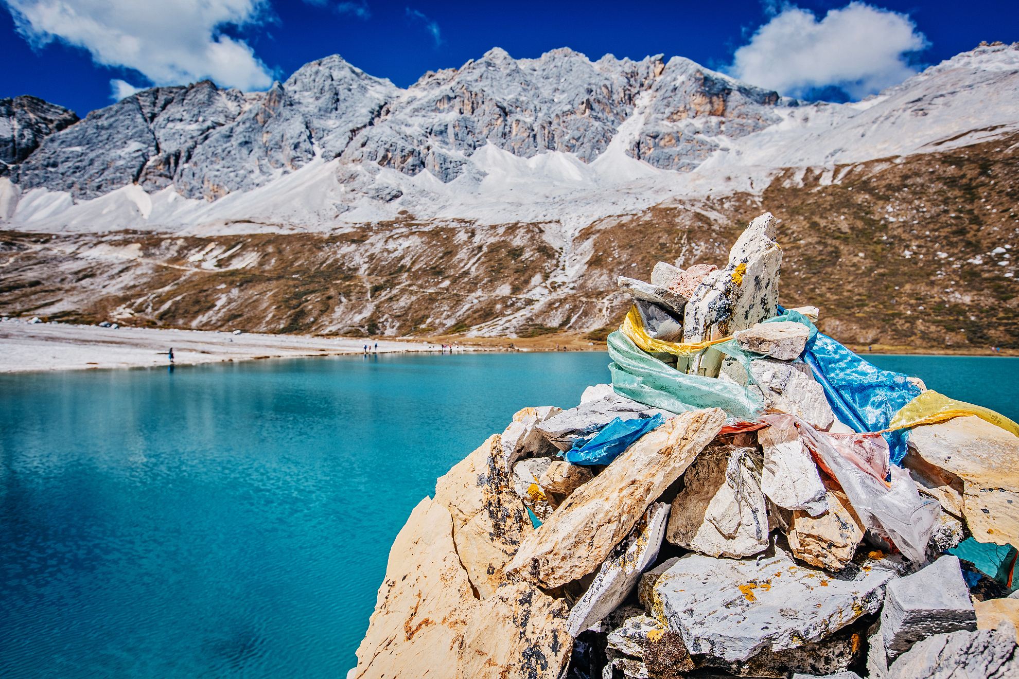 3、从洛绒牛场徒步五公里前往牛奶海(海拔4600米)、再前行500米到达五色海(海拔4700米)。一般单程徒步时间3至4小时,如果体力好,3小时左右(包含照相时间)。