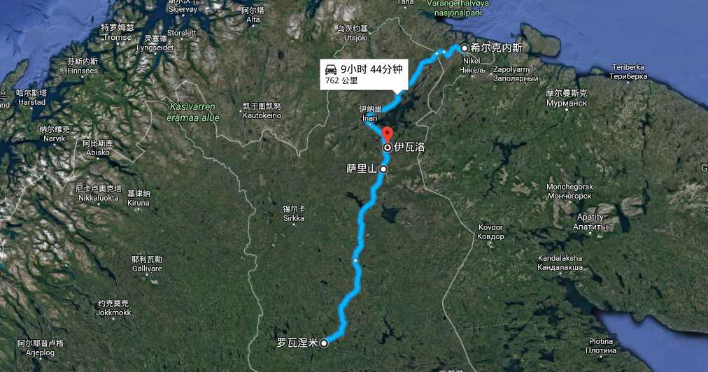 具体线路:罗瓦涅米—萨利色尔卡—希尔科内斯—伊瓦洛