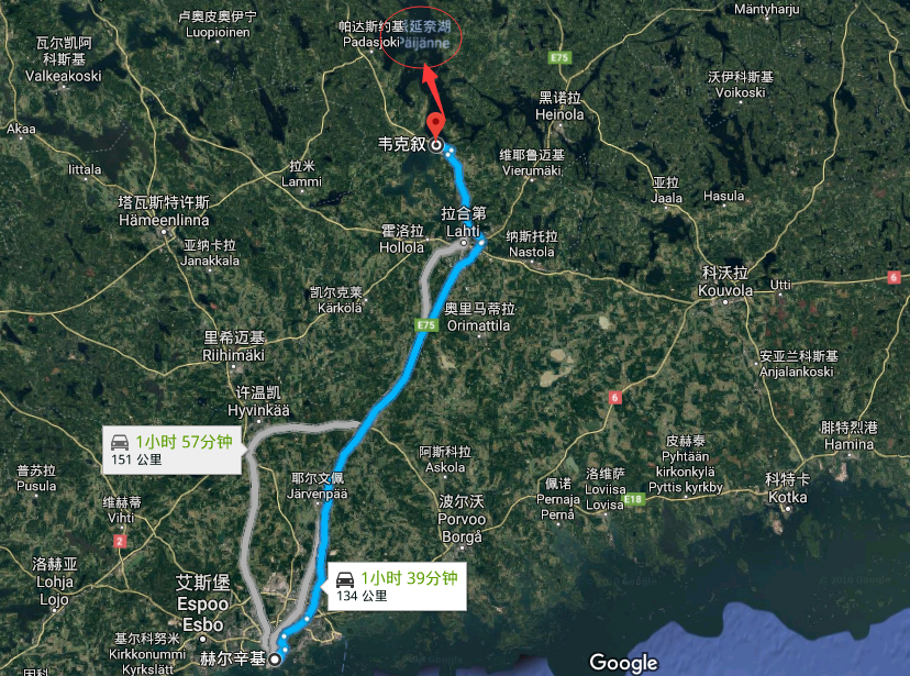 这条路线比自驾图尔库的时间少一些,主要沿着E75公路,沿途可见许多森林和湖区景致。