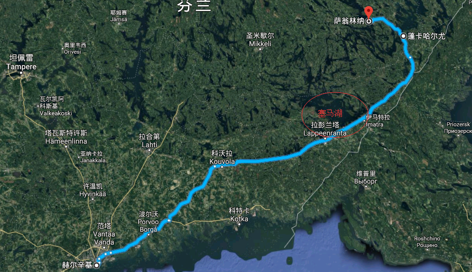具体路线:赫尔辛基—波尔沃—塞马湖—蓬卡哈尔尤—萨翁林纳
