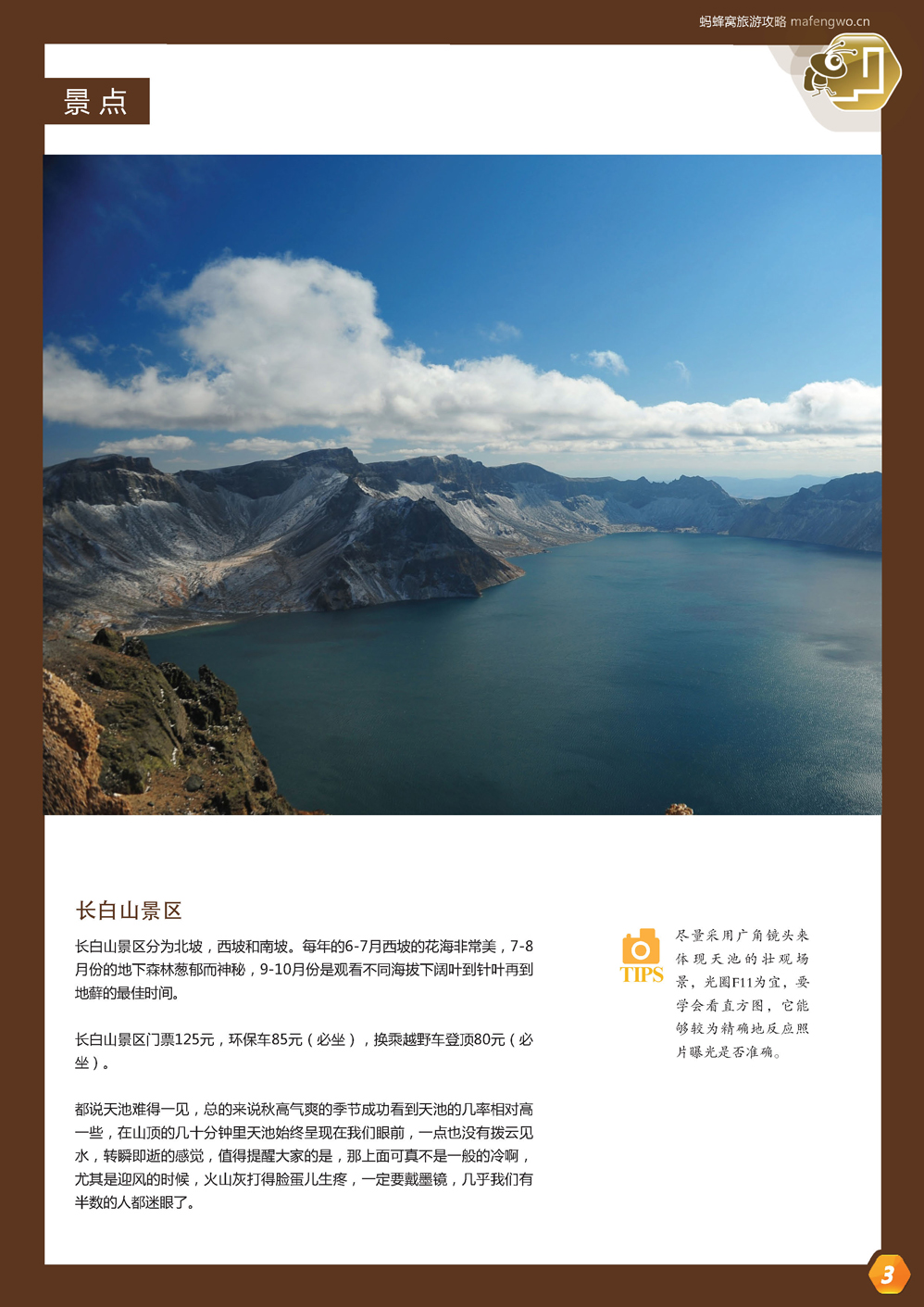 简介本攻略由蜡笔小辛和眼镜蛇独家分享!自驾长白山,尽情感受经过的每一寸土地。并且随时拿起相机,记录和分享旅行途中的美景和故事。 长白山多彩,富饶……一路上层峦叠嶂五彩斑斓,连路途也像耀眼的彩带,贯穿着你的车窗你的视线。
