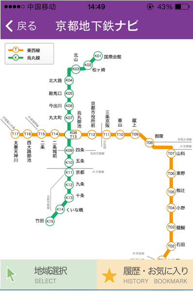 只要选择你要去的区域,就可以看到城市的路线图。比如我们选择京都