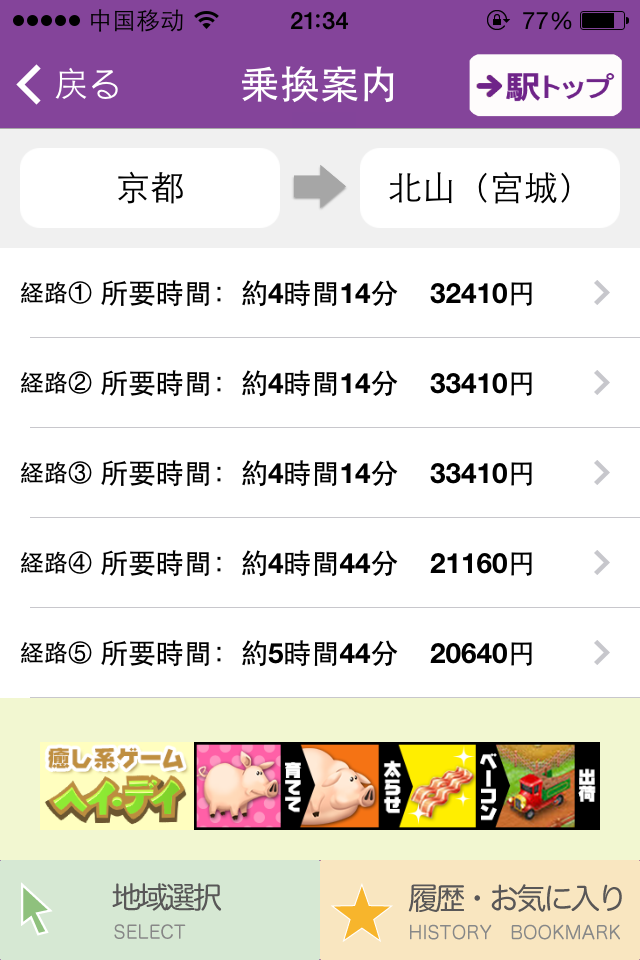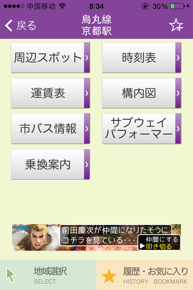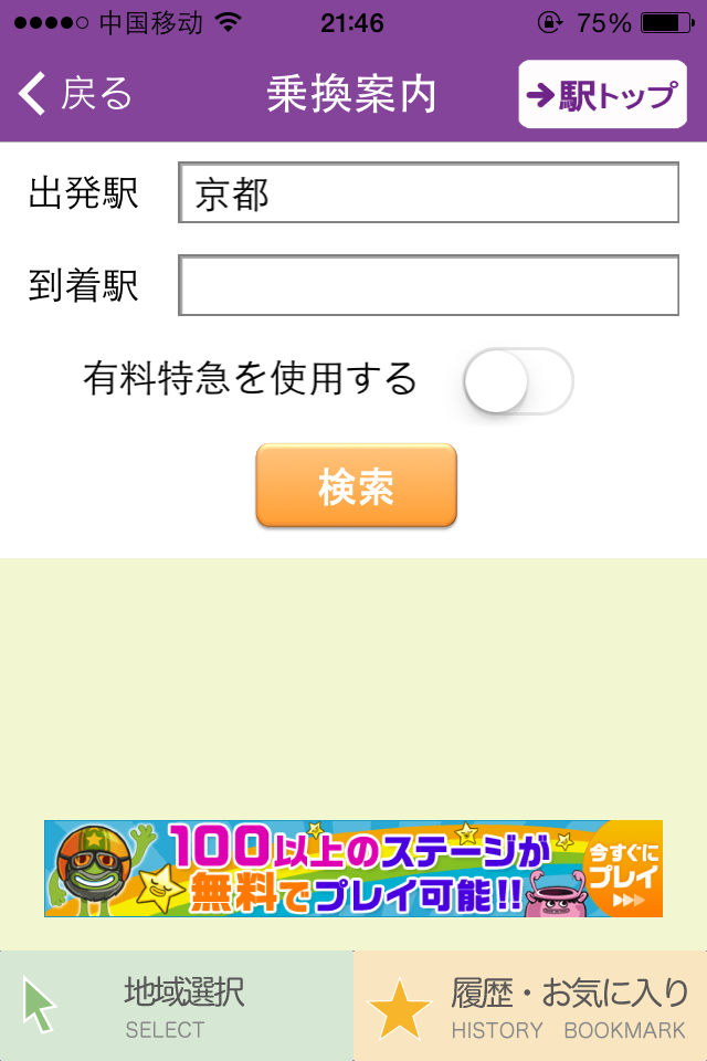 这个是以你选中的站点默认为出发点,然后选择到达地查询,例如我们上一步选择了京都站,下面选择抵达地(需要你手动输入)