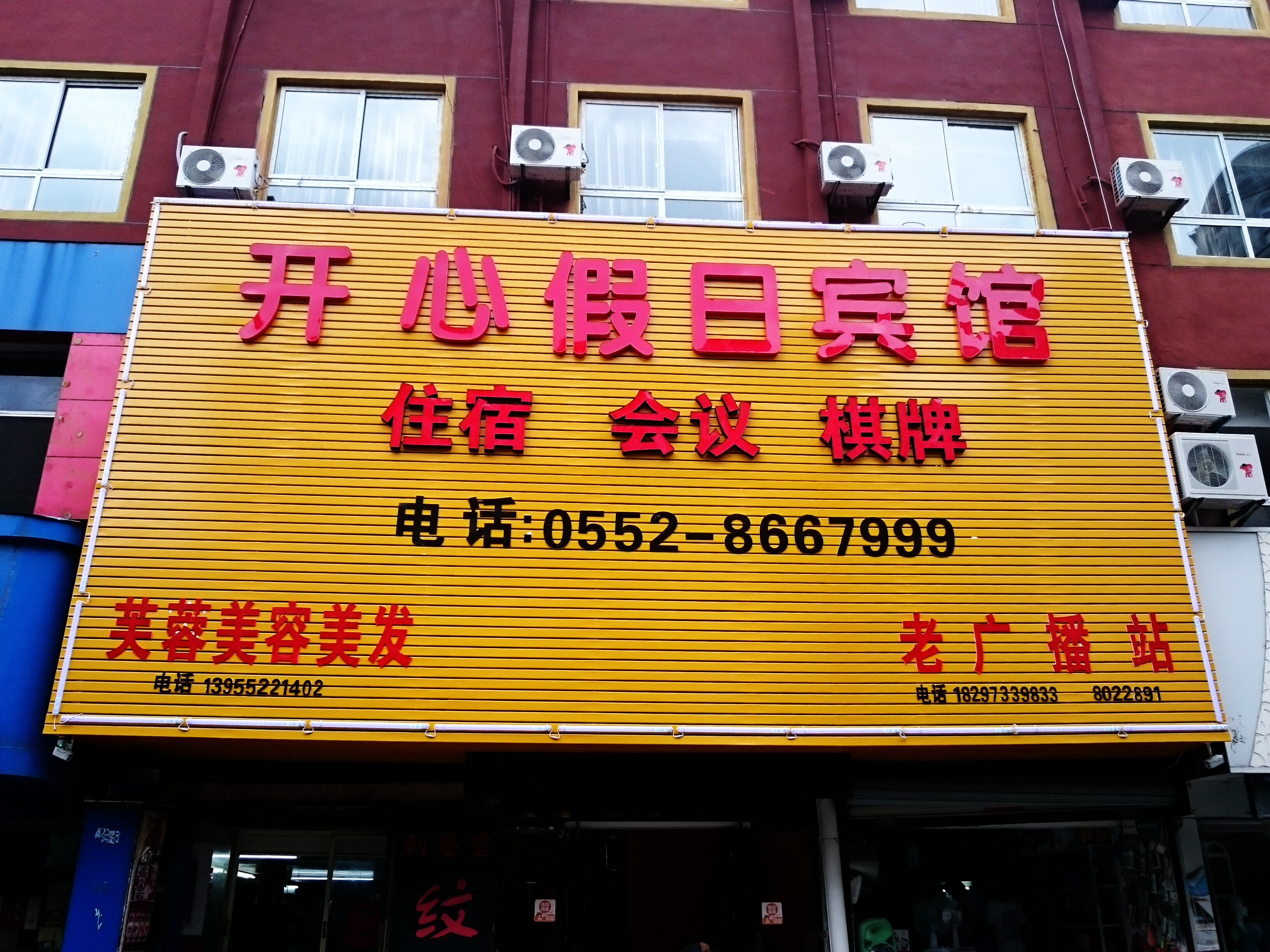 开心假日宾馆位于禹王东路,毗邻怀远县人民医院,交通便利。宾馆设有各类温馨客房,提供24小时热水淋浴、空调、电视、电话和宽带上网,让你在旅途中感受到“家”的温馨和舒适。