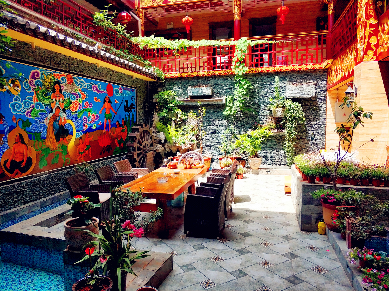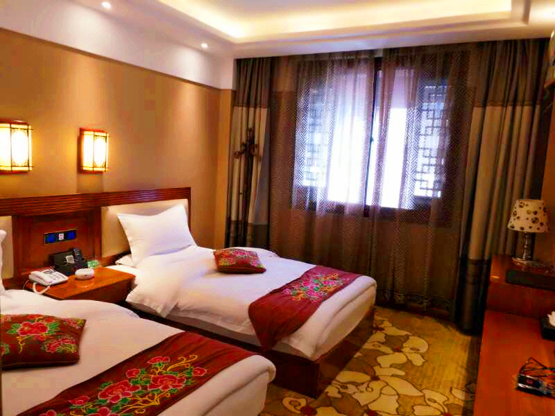 金龙酒店(楚雄彝人古镇店)是太阳岛酒店的分店,是高品位休闲和渡假为一体的特色精品酒店,共有32间客房,64个床位,装修以现代中式,休闲、时尚与彝族文化的元素相结合。酒店座落在彝人古镇最繁华的毕摩火把广场旁,是一个闹中取静的四合庭院。潺潺的流水、古朴的水车,带您入境遥远的时代。酒店风格别致,环境宜人,天天都可以在景观露台上观赏箐火晚会!酒店不仅让您感受异乡浓郁的彝族风情,更让您感受家的温馨和舒适!特别是休闲露台上的风光让你更闲暇、更惬意!断桥中空钢化隔音玻璃,豪华窗户,精致木雕实木门,更加彰显您的高贵!专线光纤网络,高速上网设施,房间内WiFi单独使用,让您真正享受时尚而有品味的人生。绿色的营养早餐让你更放心!这里不仅是游客旅行途中休闲入住的好地方,更是商务办公的好场所!您的到来,是我们的荣幸,也是您的快乐!