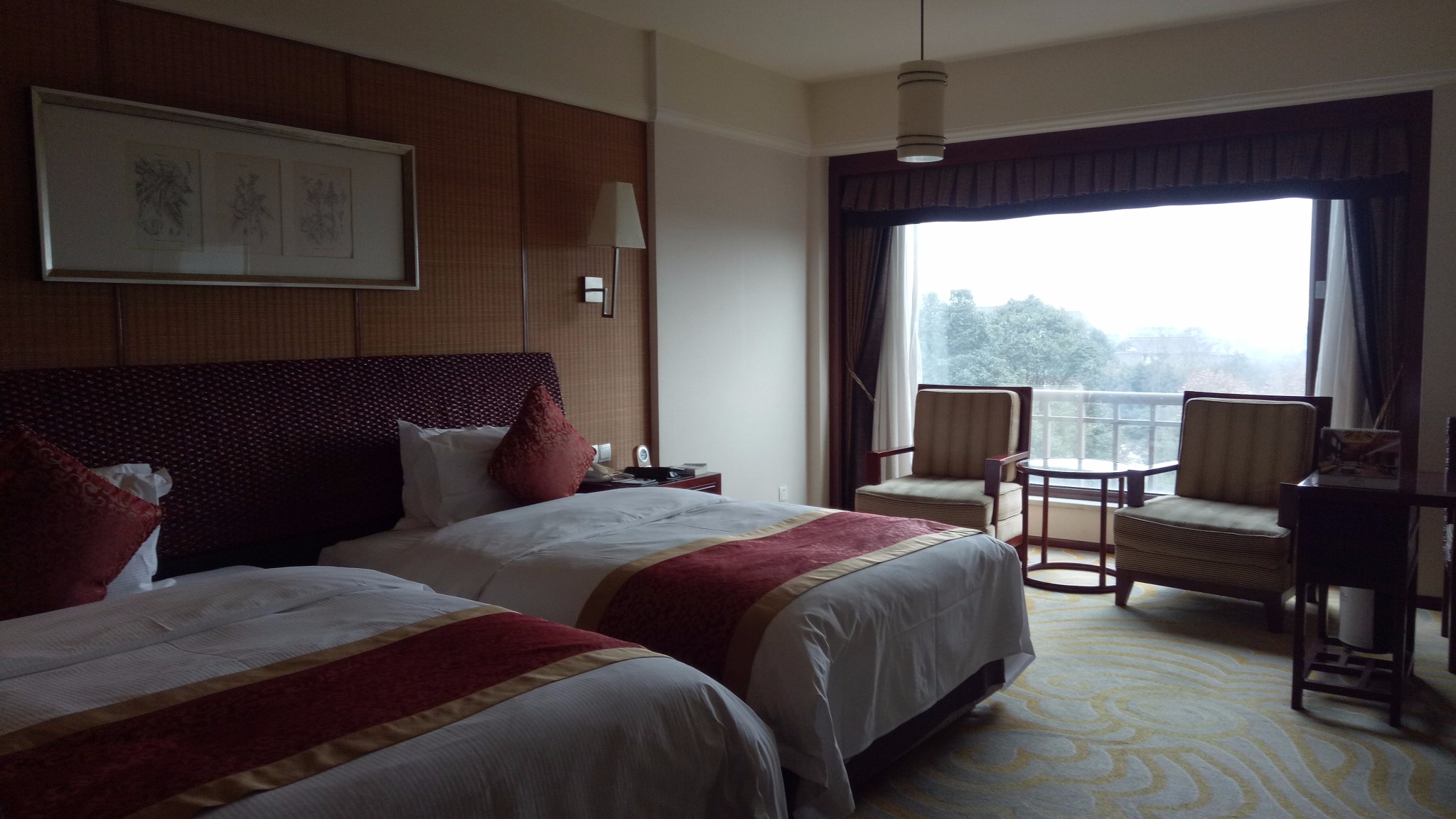 标准的五星酒店,位置好,就在青城山新山门对面,酒店用了大量面积作书店,超赞!庭院面积巨大,还自带温泉,水质好!