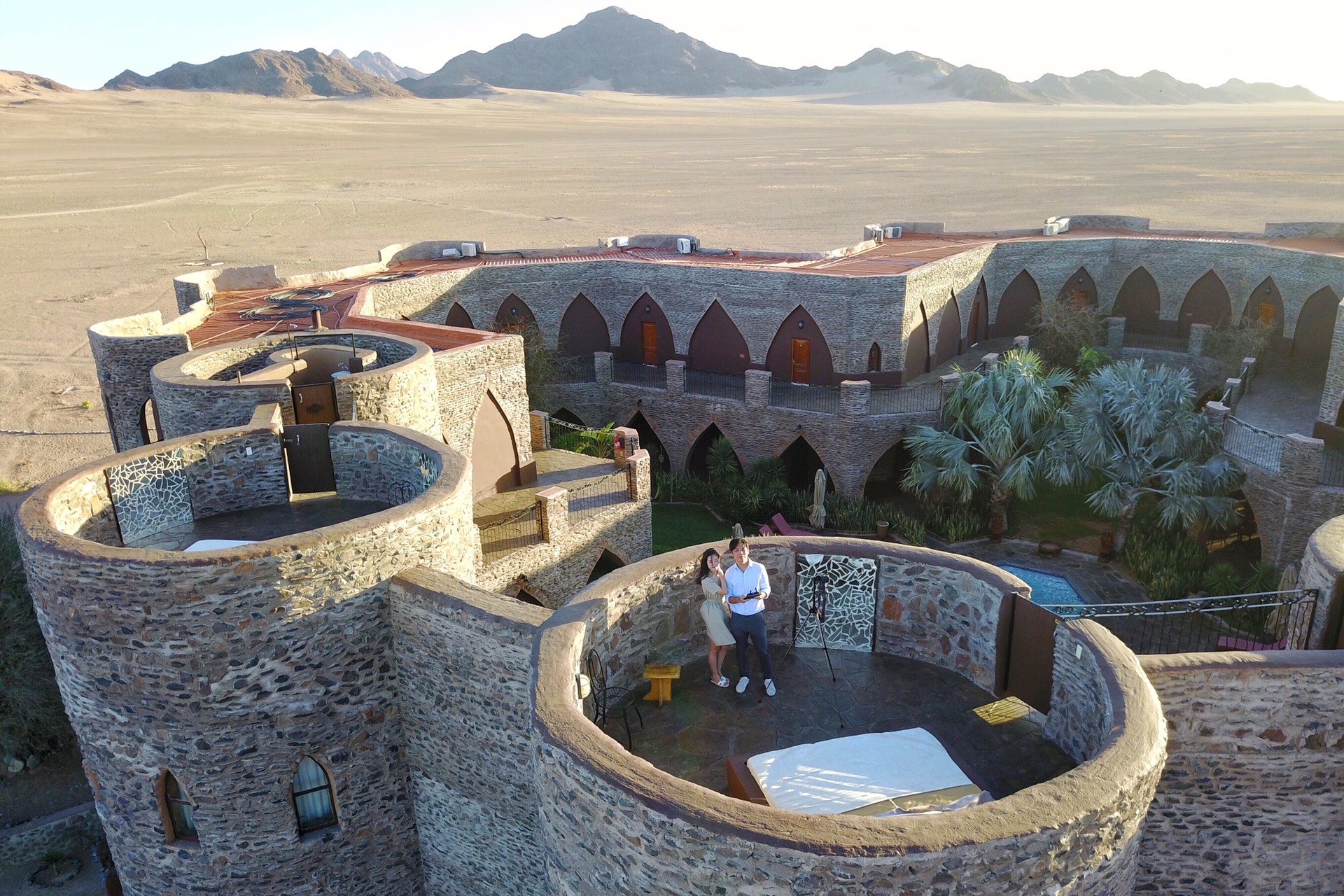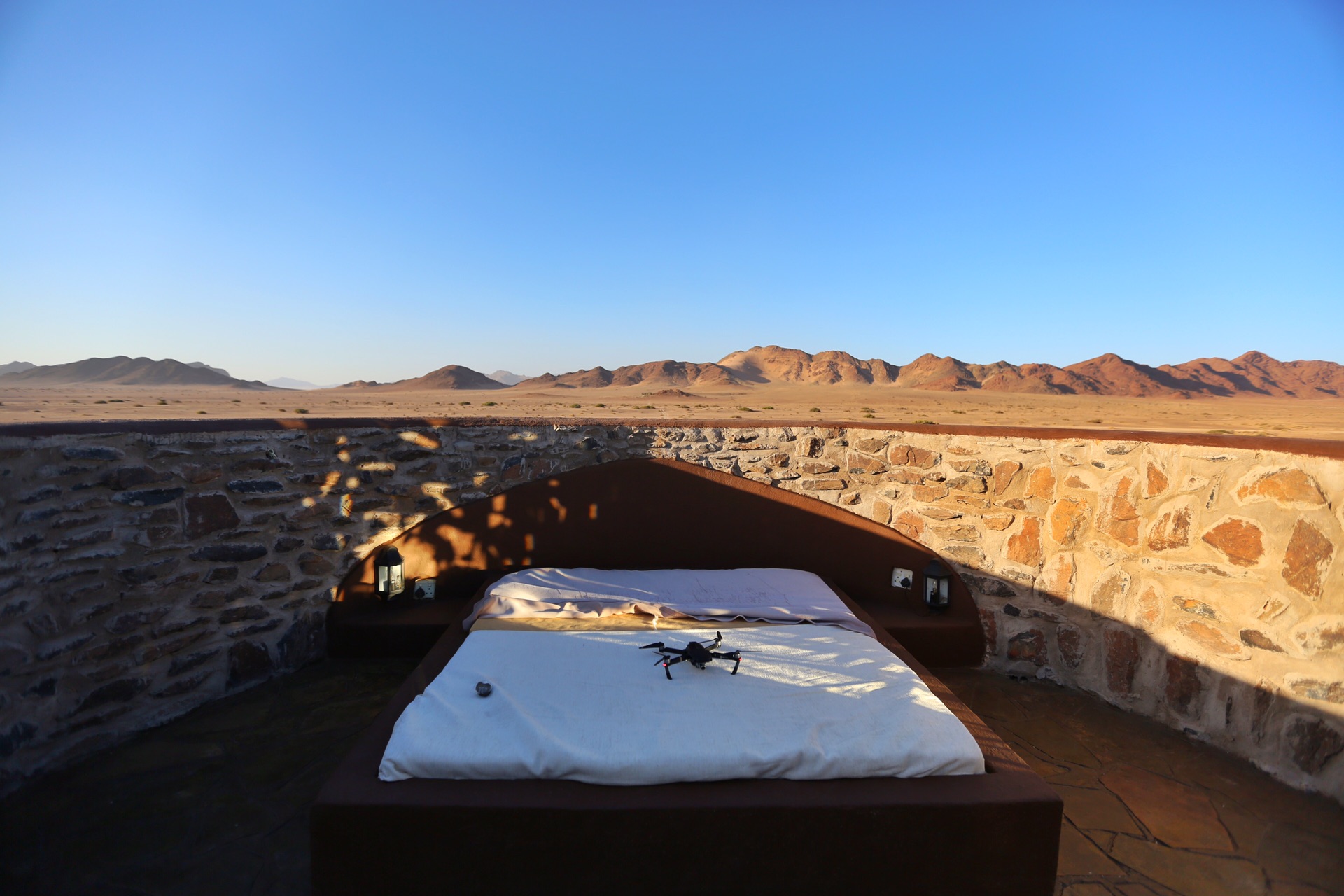 酒店有两间星空房,是独立于正常房间在最顶楼的,需要作为附加另外预定。不过此时是非洲的冬天,即使在沙漠里晚上也没有超过20度,并且会聚集水汽,拿来躺是不太现实的。但风景这边独好,凹造型总是必要的。