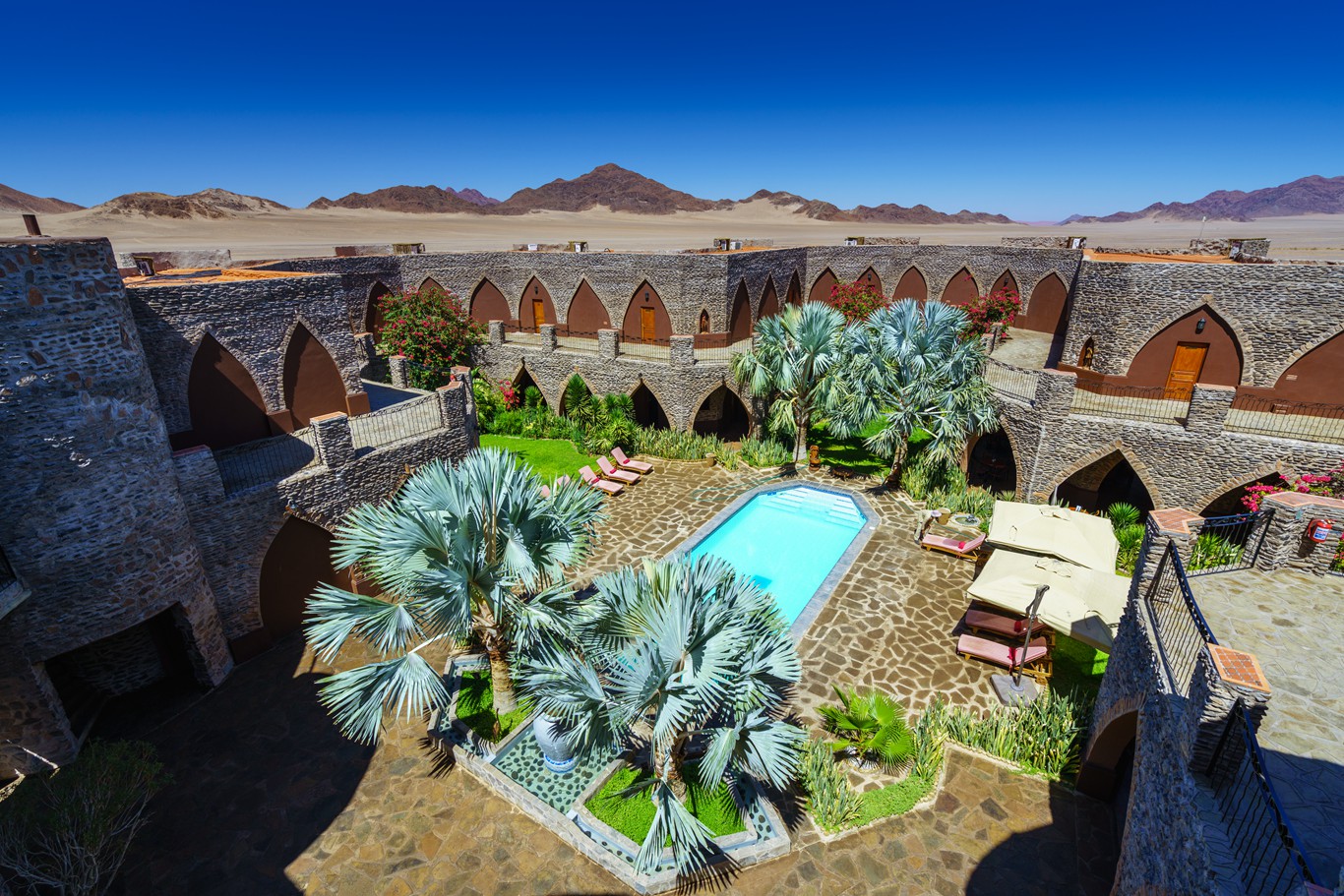 跟阿联酋沙漠酒店奢华精致的风格相比,这里显得简朴粗犷。没有过多装饰,只是安静矗立着,仿佛已承载了这片古老沙漠一亿多年的变迁。