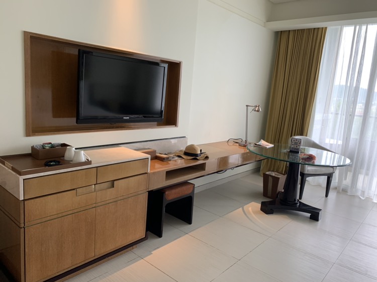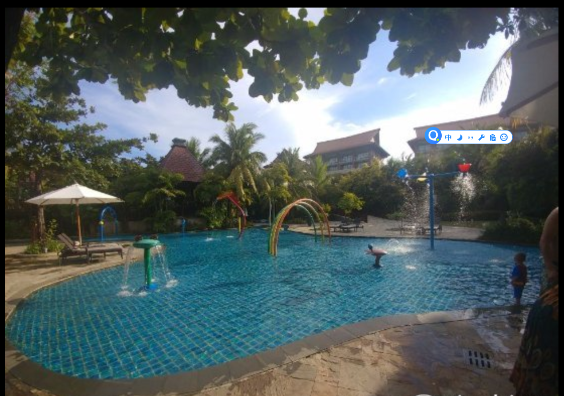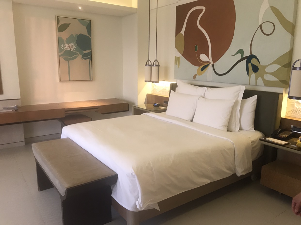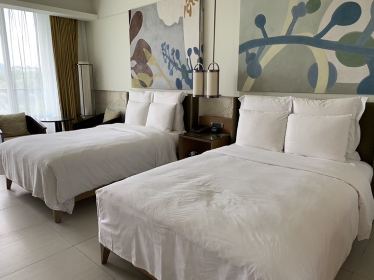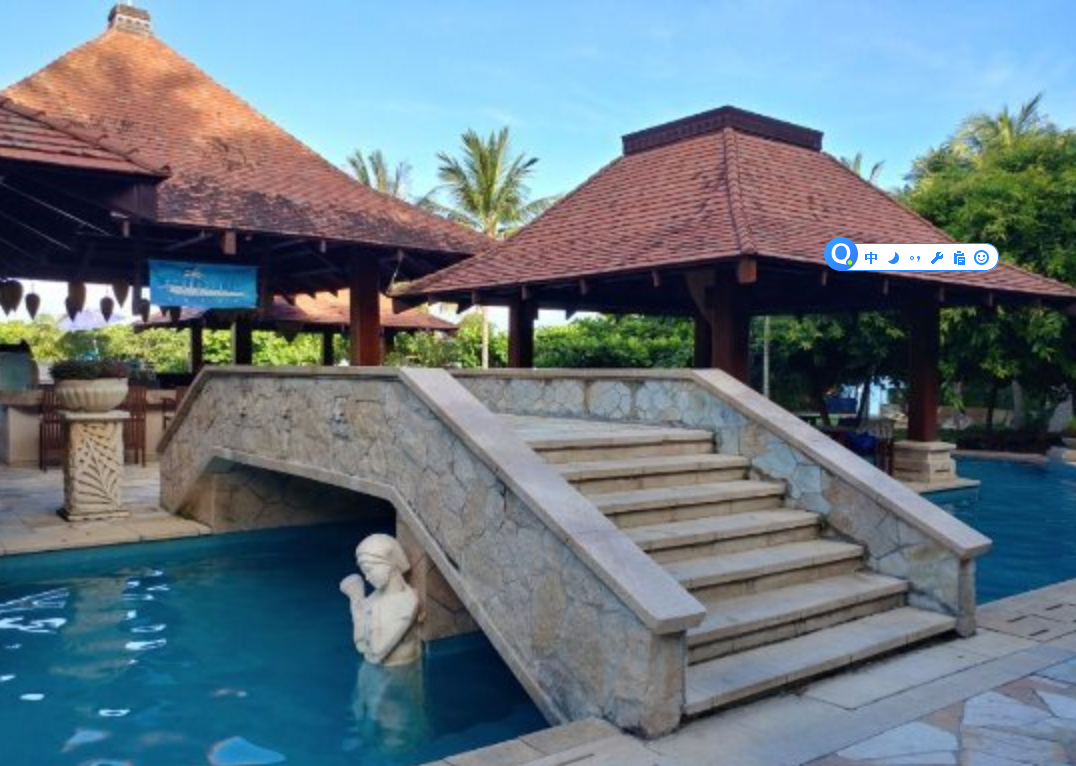 由于飞机晚点,我们刚好坐上了酒店的巴士,就我们几个人完全就是包车。酒店服务态度非常好,房间在一楼,走几步就是泳池,我选择万丽主要是看到有人说万丽的泳池旁边有树,即使有太阳都可以在树荫下游泳,果然如此,孩子们都玩得非常高兴。早餐也丰富,比较适合带孩子一起来玩。
