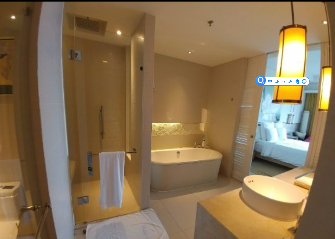 超级喜欢这个酒店,虽然位置很偏,但是景色很美呀,远离人烟。卫生间装修风格也很喜欢。带家人来住的,爸妈可以去海边散步。小朋友可以去游泳,还有游戏天地,小朋友也很喜欢哦,就是要收费。看别人的点评,跟着他们点的外卖,大家如果也要点外卖的话,记得早点定,不然会等很久,毕竟位置有点远。