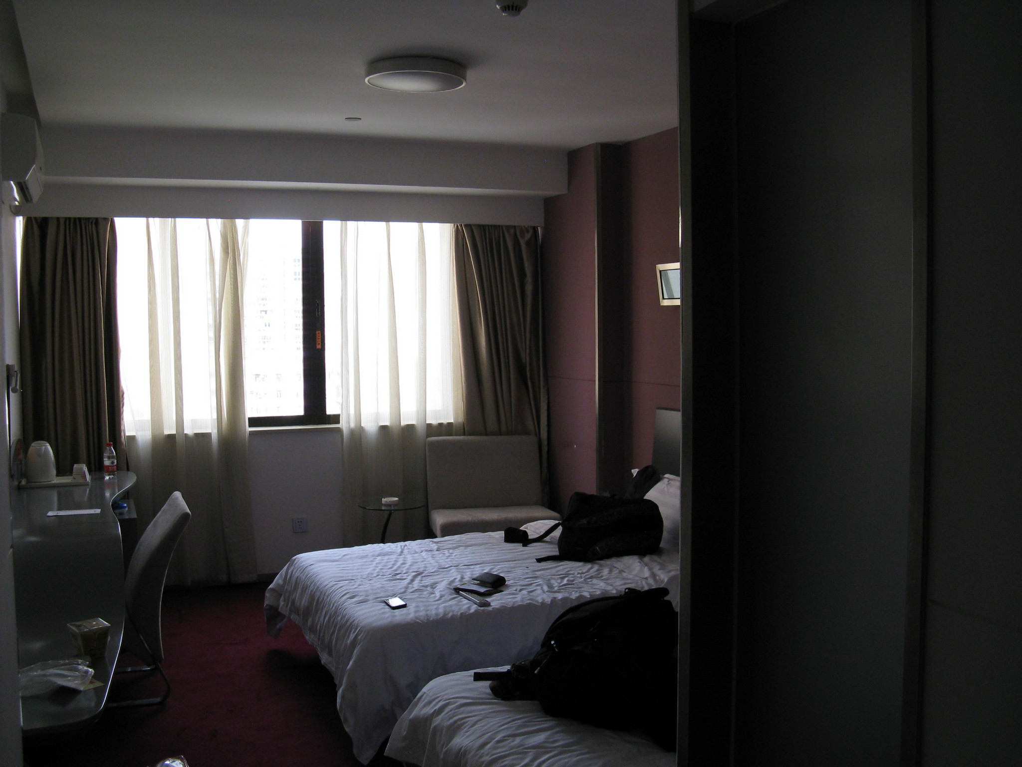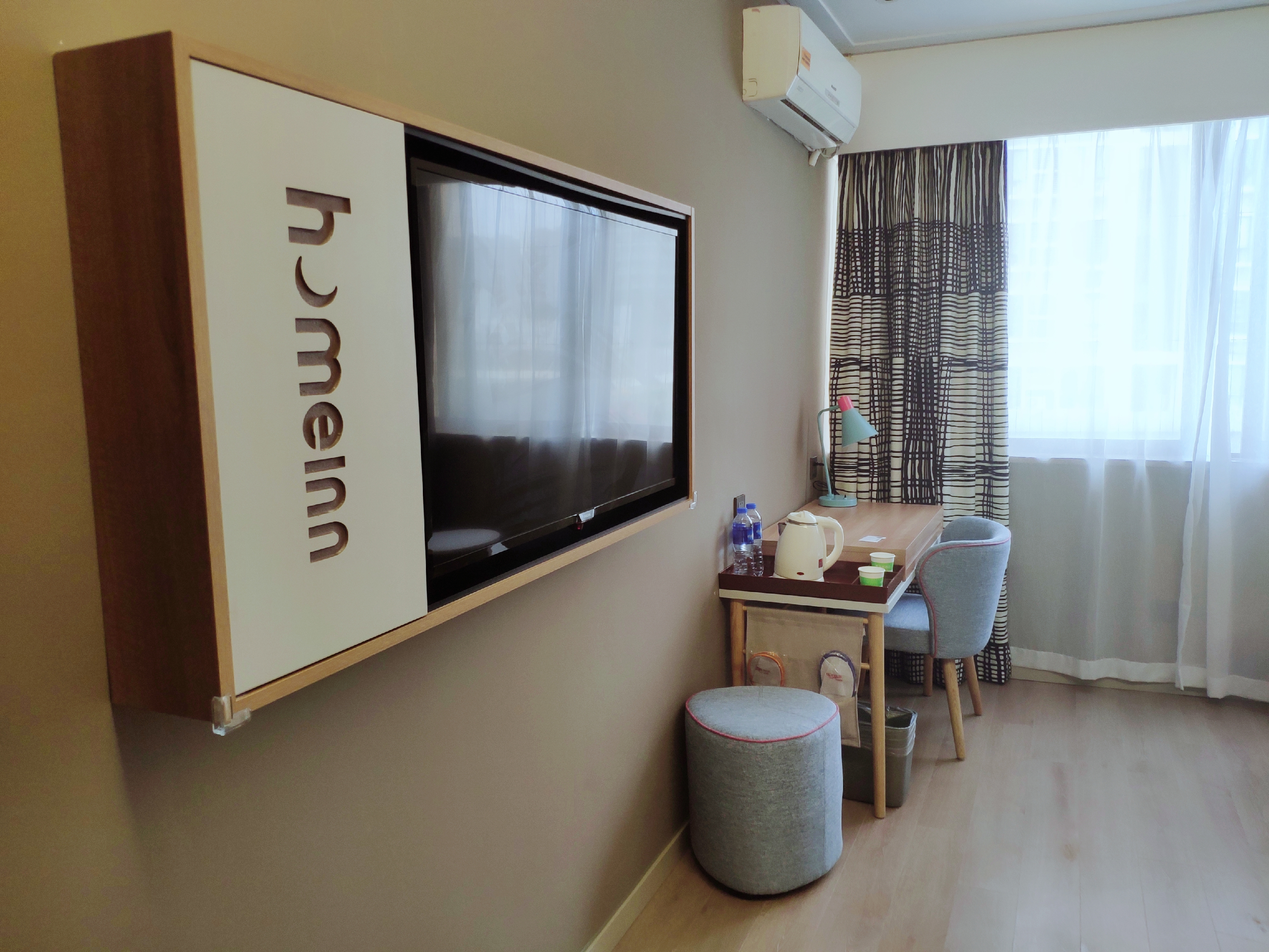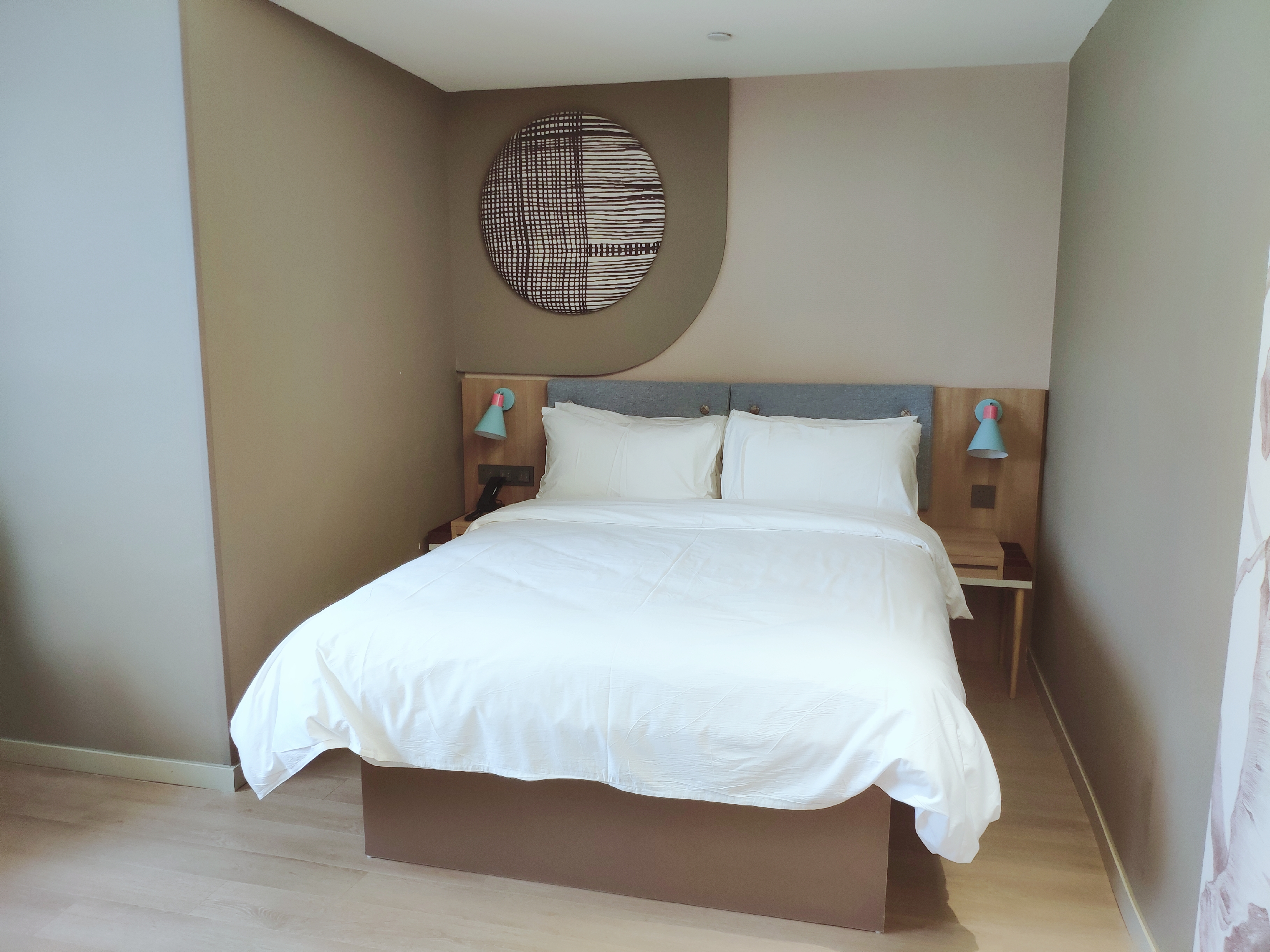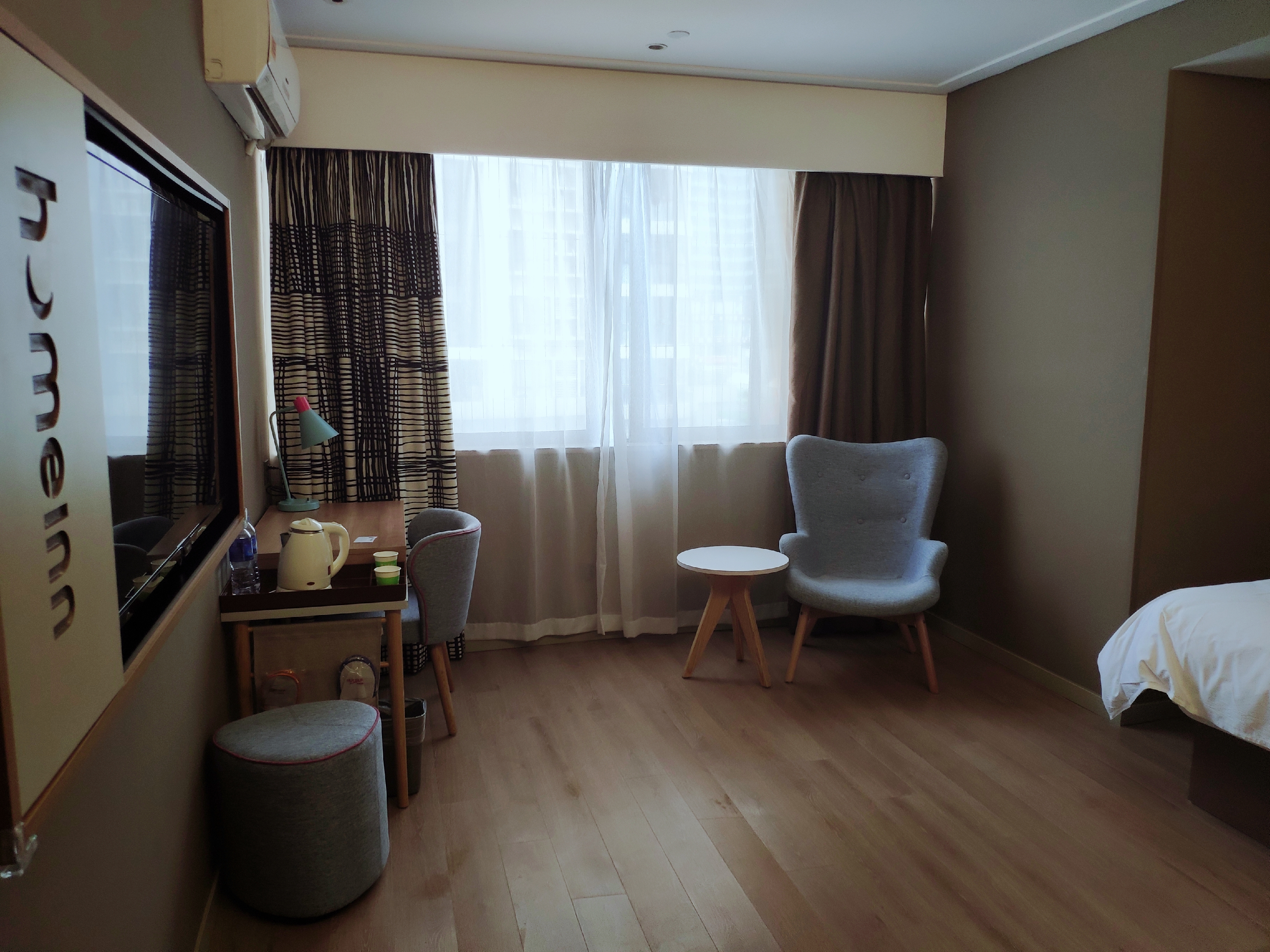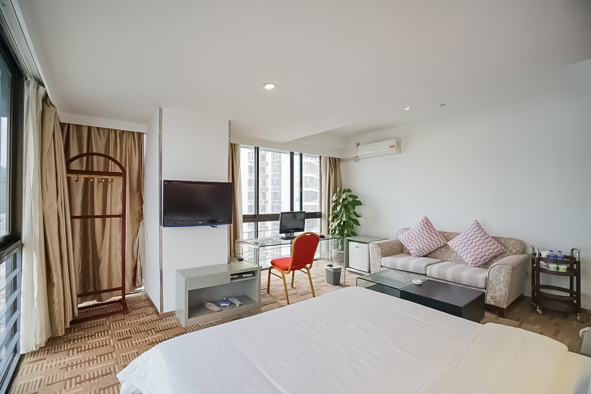 订的是全新商务床,所有家居都是全新的,很干净,镜子还带灯光。唯一美中不足的是地板没铺好,中间凸起了一块地,然后新装修有点气味。因为装修施工和地铁施工,商家给安排后面的房间,比较安静,服务特别好。