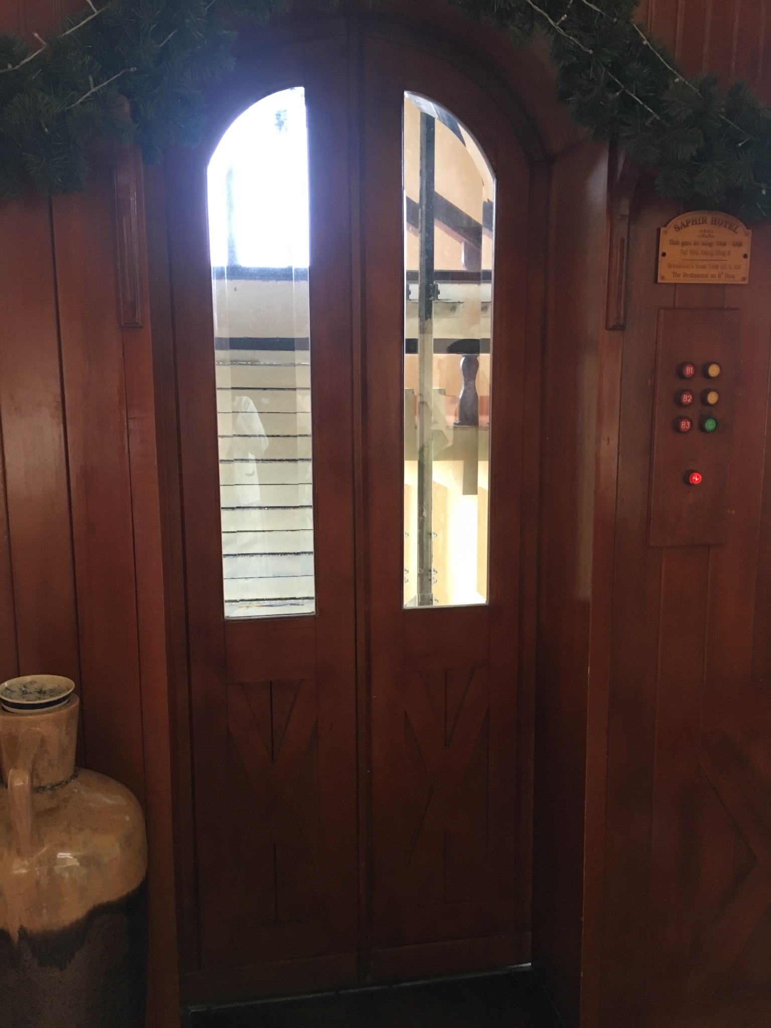 整座酒店的上下连结,全靠一部老式的木质电梯~但房间确实不隔音。