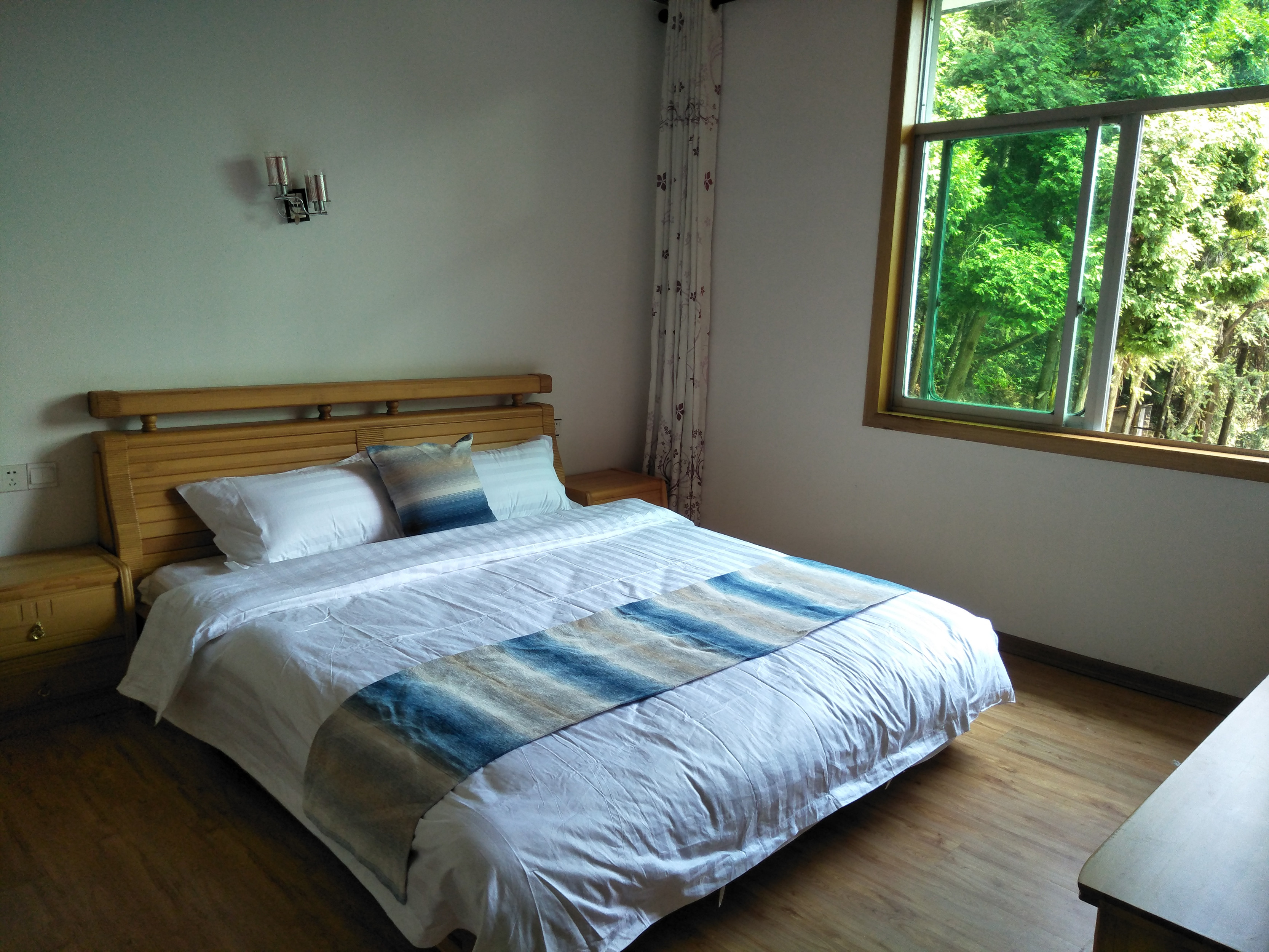西宝的环境真不错,毗邻根宫佛国,没有车水马龙,宽敞清幽,停车场有两个,客房不多,只有几间,干净整洁,节假日各大酒店都涨价,只有西宝还是老价钱,还包含了早餐,强烈推荐!