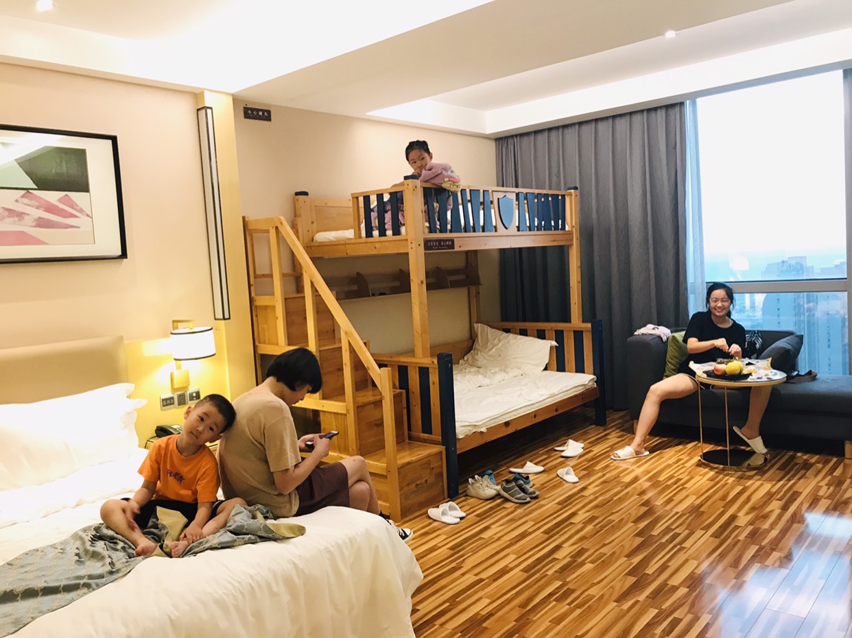 孩子们太喜欢高低床了,环境不错的,晚上安静,服务态度好,自助早餐很丰盛,离购物中心很近,水世界也很近,好可惜酒店泳池没去,门口就是宁波体育公园,早上跑步很方便。期待下次再来