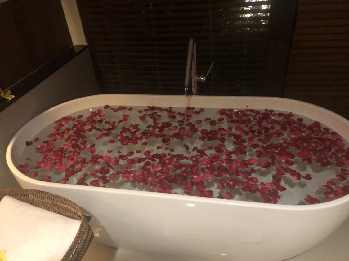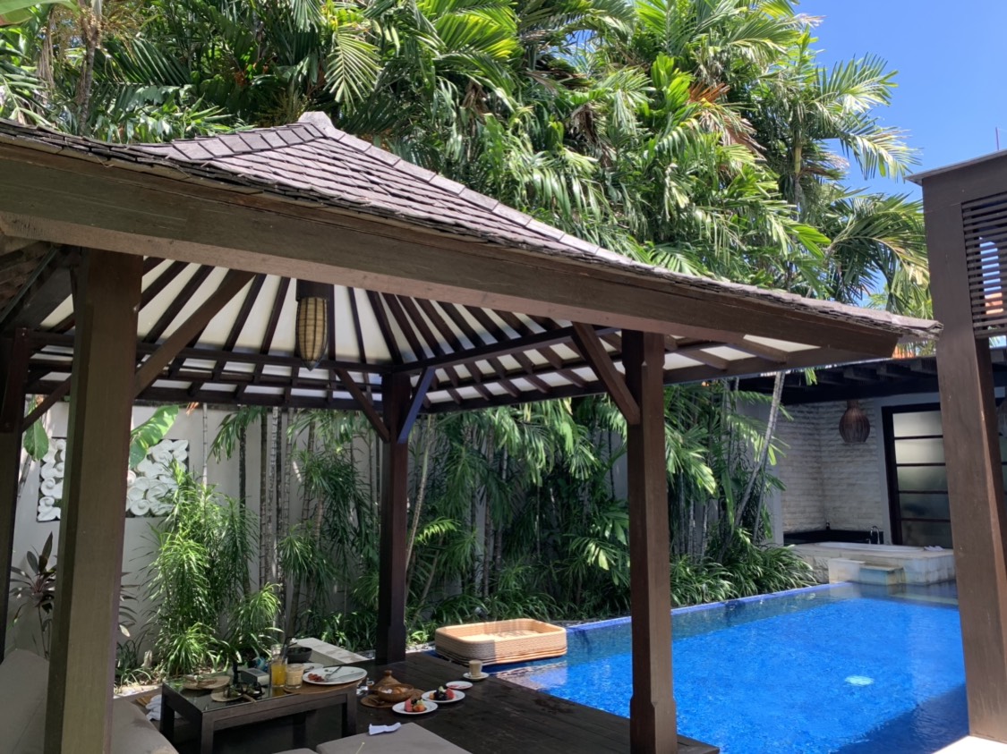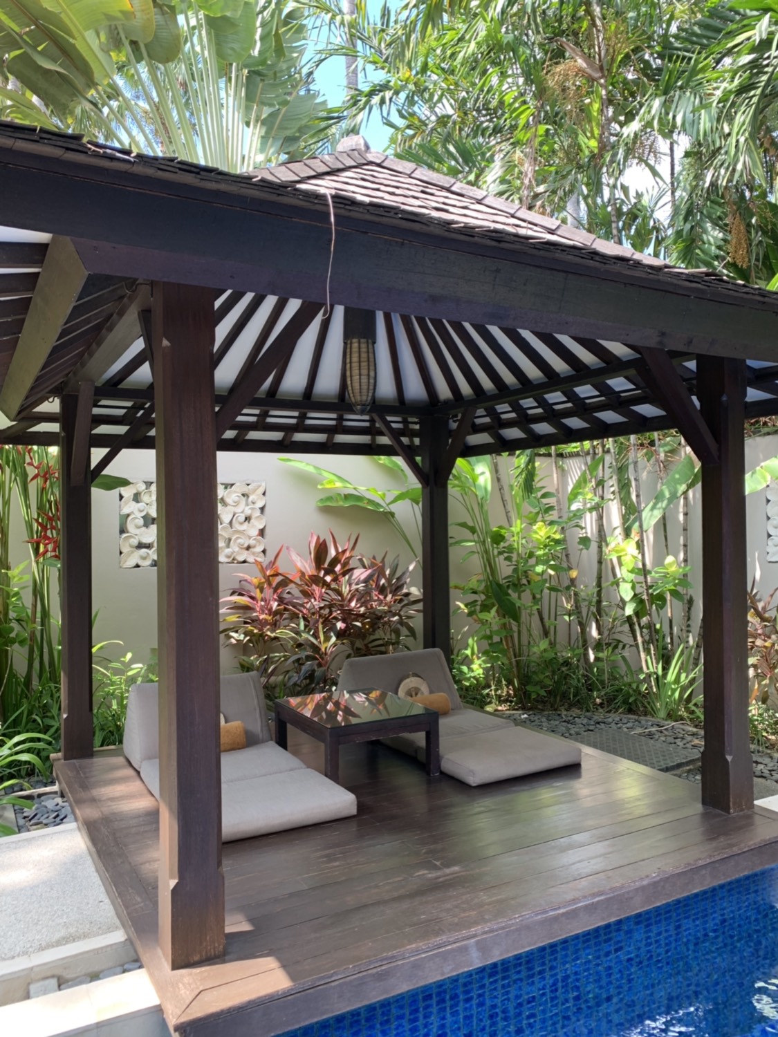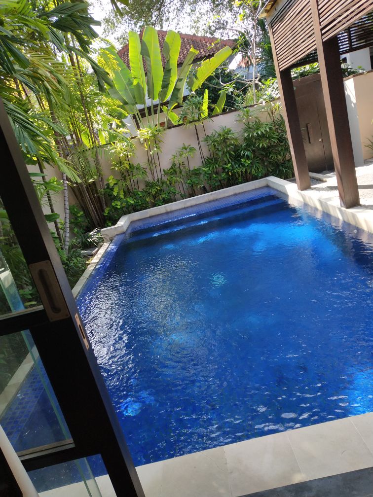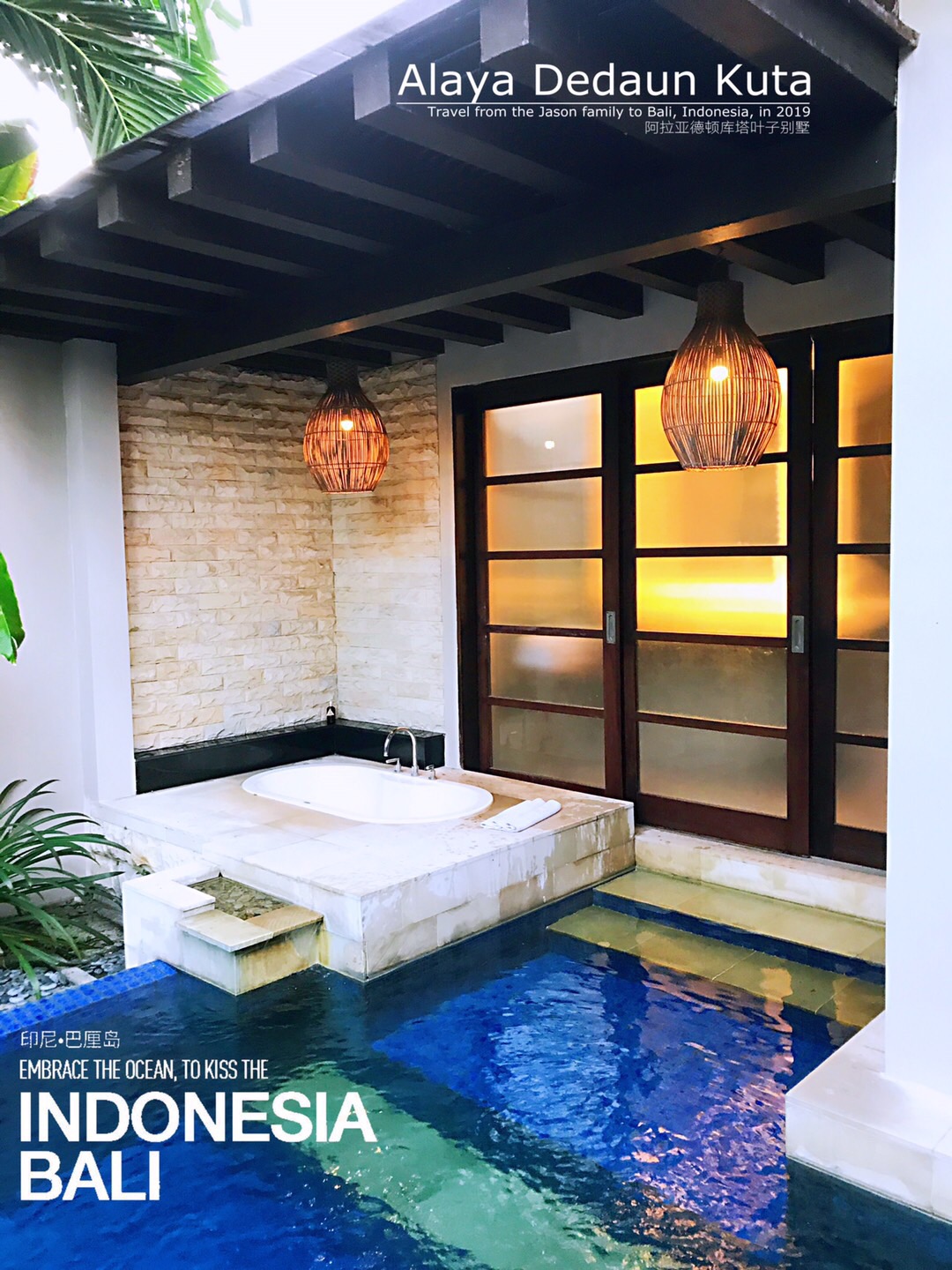 豪华的房型可以从卫生间有个推门直接通往泳池,不过室外的浴缸很脏,不要泡澡哦。