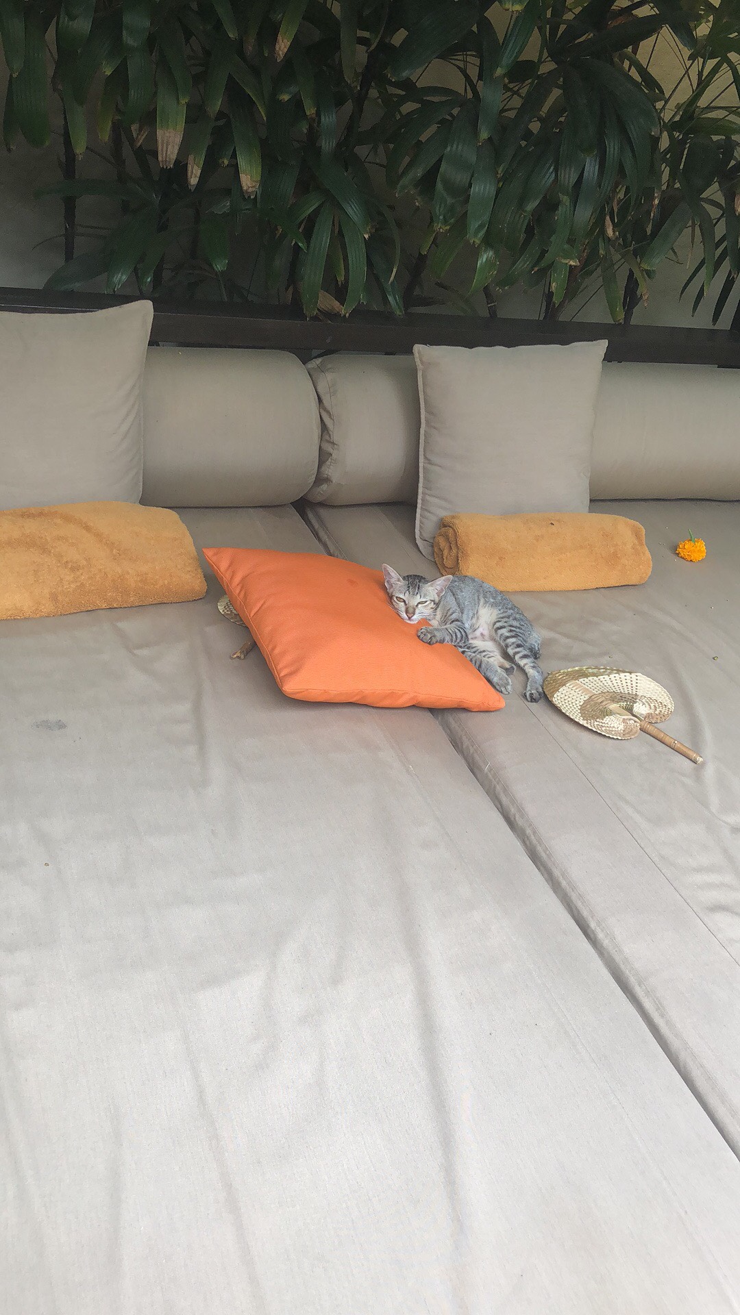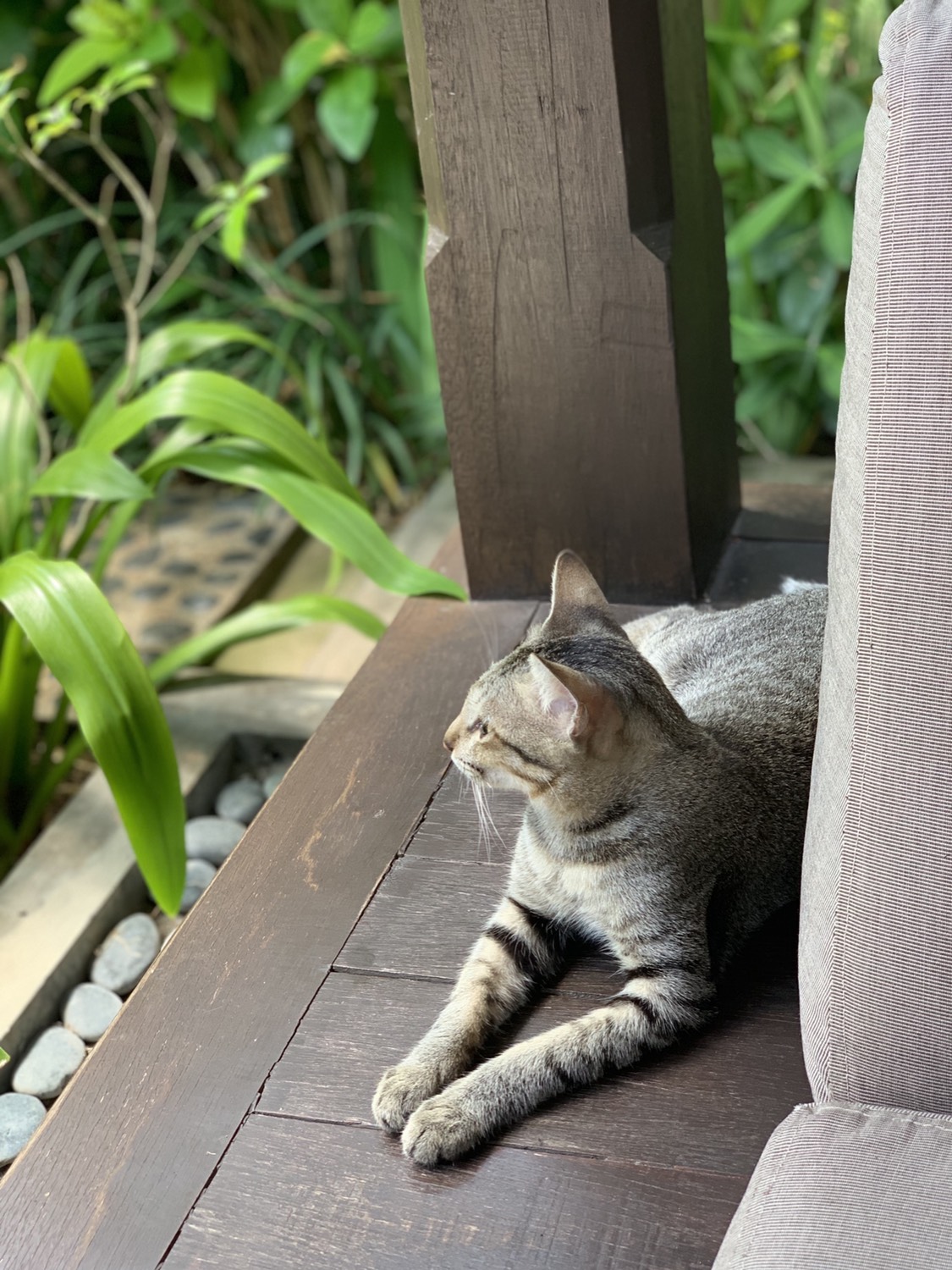 泳池边有个小凉亭,但是不建议坐上面,因为这里最起码有3只小猫,凉亭是他们睡觉的基地~