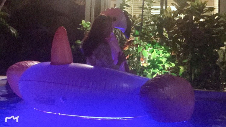 第二天漂浮早餐可以坐在泳池的楼梯上吃,比较方便,一到酒店,泳池周围已经被我们玩水玩得湿湿的。