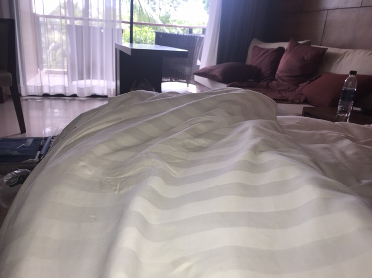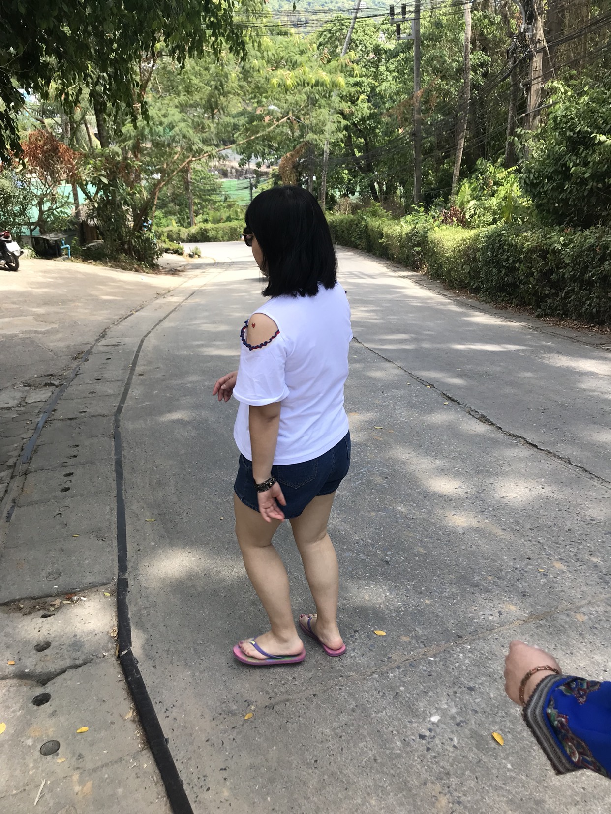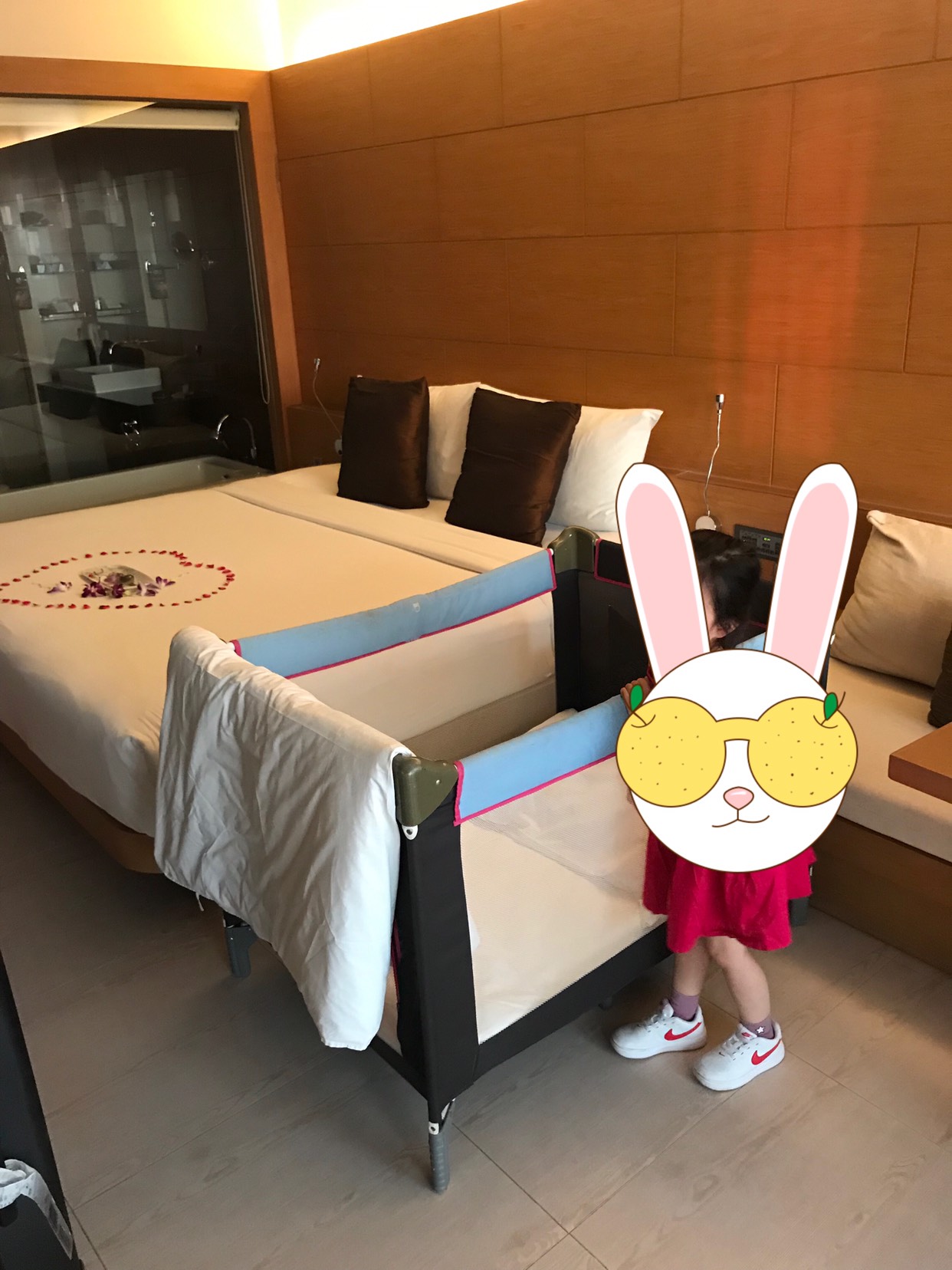 门口那个大坡,真是百闻不如一见!不是爬坡,是爬山!太陡了,每次走都担心会滑下去,汽车经过时不轰足了油门,都上不去。照片根本拍不出来那种坡度。不过不影响住酒店的心情,换了海景房,很赞很赞。酒店设施一般,中规中矩,自助餐品类太少太少,还不如曼谷市区的holiday inn,但服务超好,热情有礼貌。我们在预定的时候说了有个四岁的孩子,结果酒店竟然给了我们一张婴儿床,哈哈哈