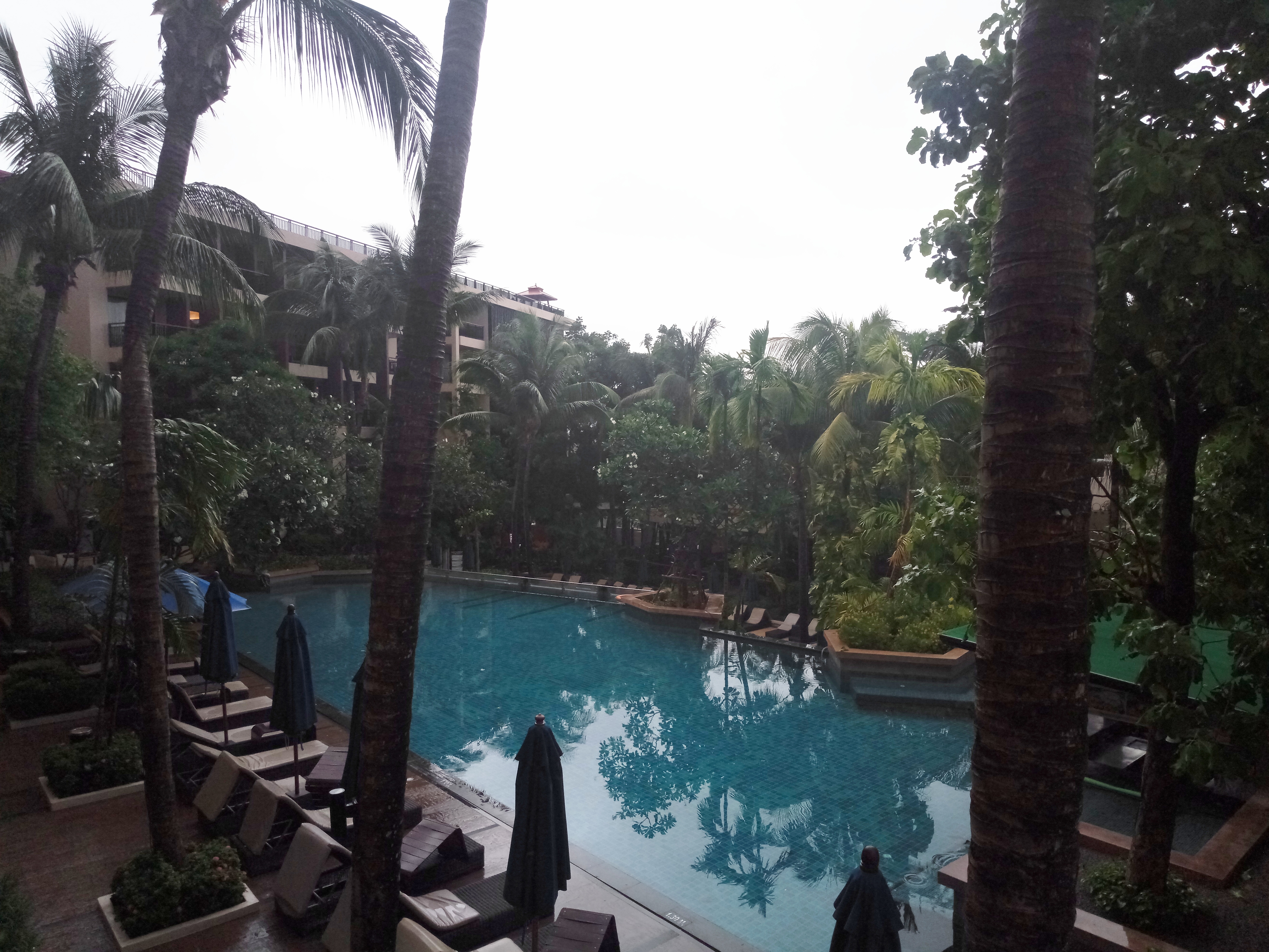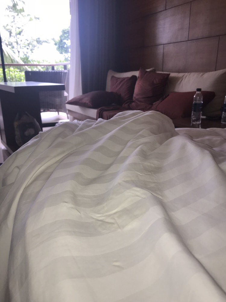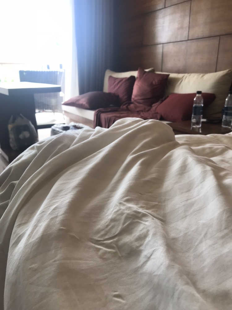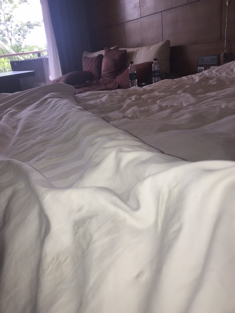 门口那个大坡,真是百闻不如一见!不是爬坡,是爬山!太陡了,每次走都担心会滑下去,汽车经过时不轰足了油门,都上不去。照片根本拍不出来那种坡度。不过不影响住酒店的心情,换了海景房,很赞很赞。酒店设施一般,中规中矩,自助餐品类太少太少,还不如曼谷市区的holiday inn,但服务超好,热情有礼貌。我们在预定的时候说了有个四岁的孩子,结果酒店竟然给了我们一张婴儿床,哈哈哈