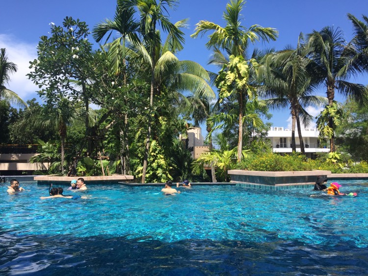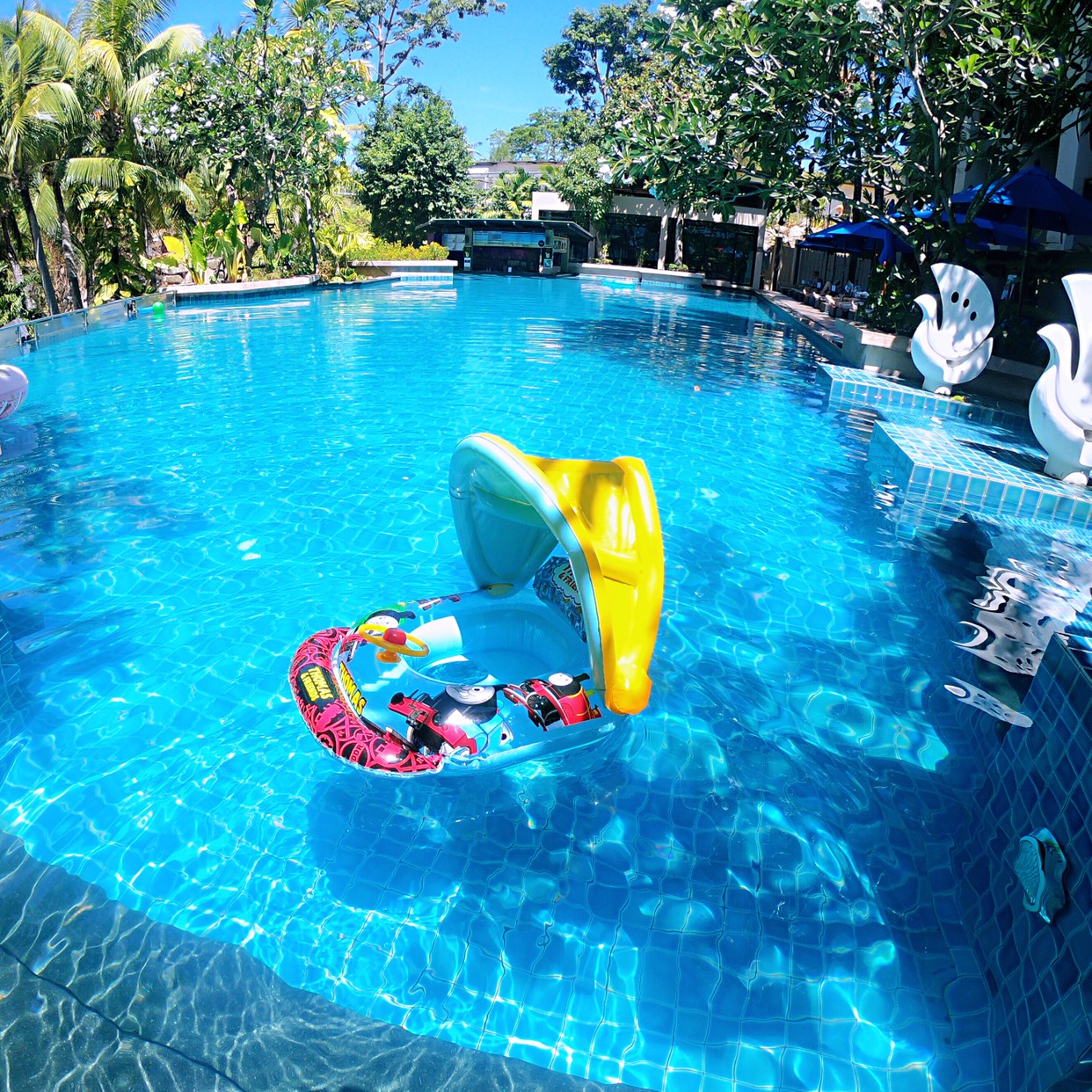之前看了许多关于这家酒店的评论,担心比较多,关于对华人的态度,包括门前大高坡的问题,最终我还是决定预订这家酒店。现在告诉大家我的亲身体验。首先对酒店服务态度问题,我认为非常好,非常热情。迎宾毛巾和冰凉爽口的饮料。每一位工作人员都非常热情,酒店自有的叫车服务非常棒,Grab 叫车10座车需要740泰铢,酒店叫只需500泰铢。泳池分两处,水位有些深,注意安全。下面隆重介绍一下大高坡的问题,不夸张的说,那是真高啊,我们每天推童车上山的场景,别提多惨了,如果你足可以承受的话,强烈建议你选择这里,居住环境很安静,房间带阳台。员工服务热情主动,而且距离卡塔海滩的确算近的,下了大高坡就基本上到了。