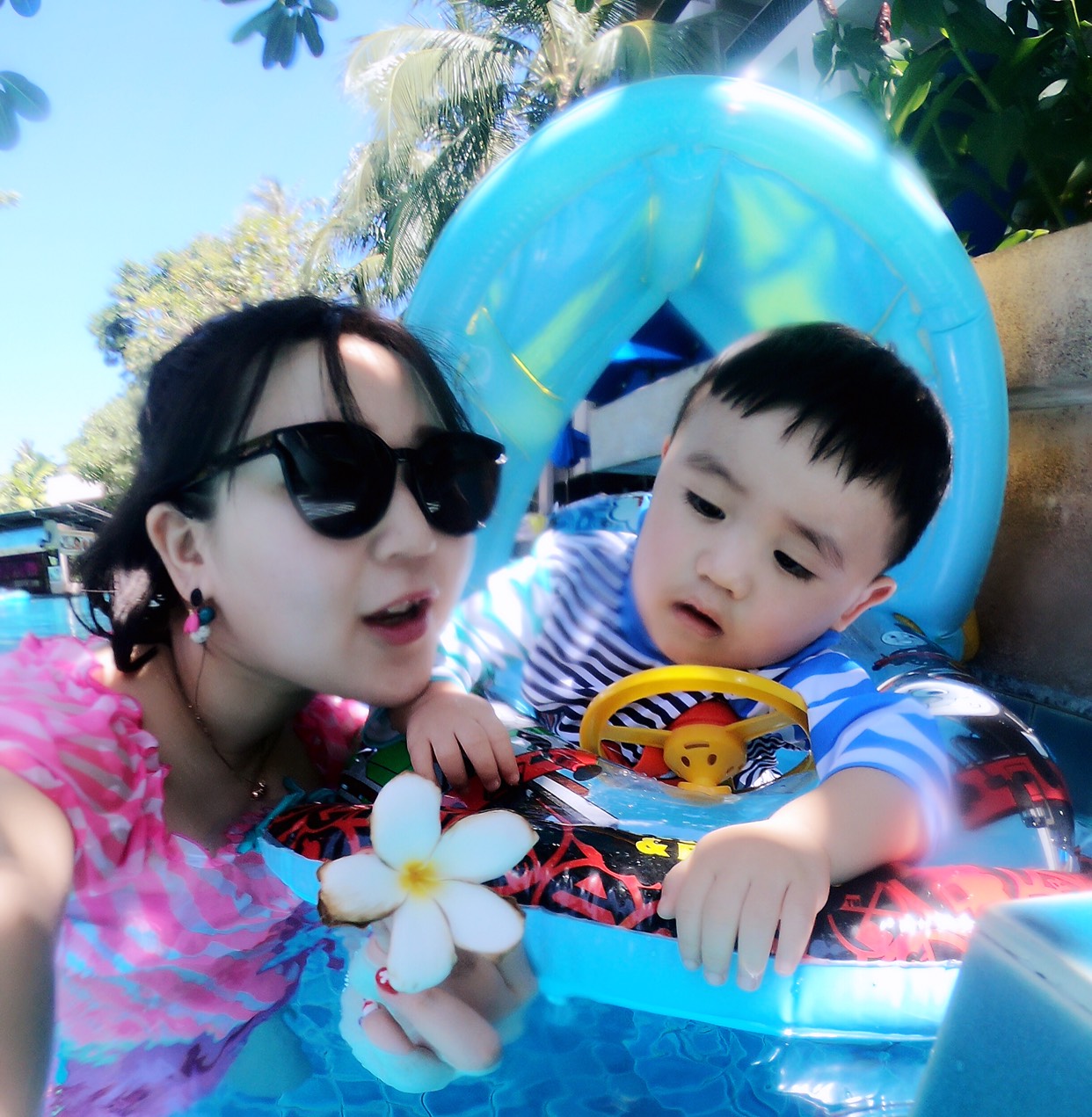 远处是湛蓝的大海,空气中都是花香。这种天然的美,这种由心而生的夸姣满意感,是在帝都繁忙的我们不曾体验到的。饱饱地吸了几大口清香的空气,去吃酒店自助早餐。