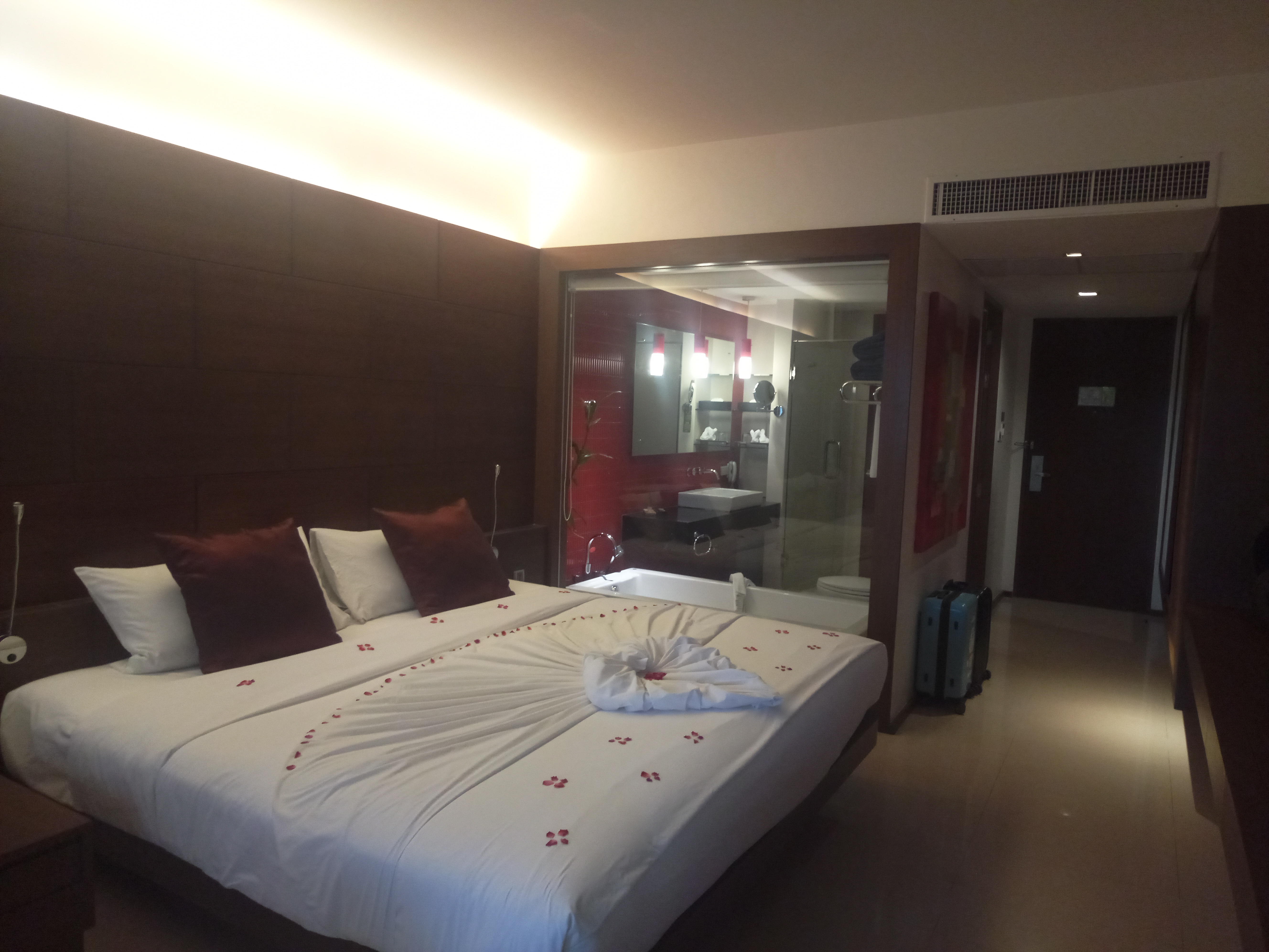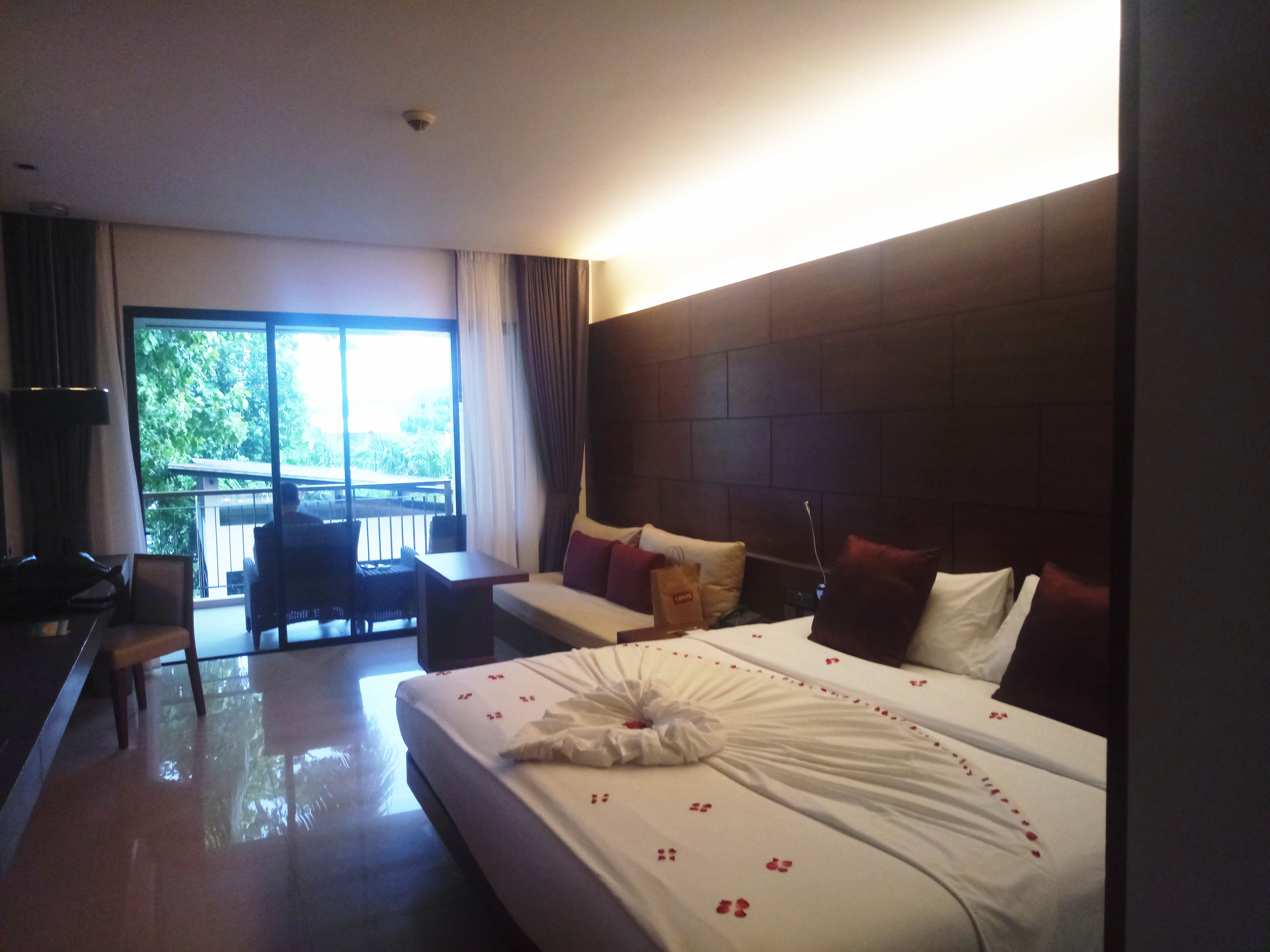马蜂窝提前一个多月订的,价格比较合理。酒店属于高大上的,前台小帅哥非常热情,早餐品种多而且精致。台湾妹妹Judy非常热情。吃早餐服务很好。两个泳池,不是很大,但足够游泳,我们每天都会去泳池游泳。大床房是相当大的床,足够一家三口。房间也大,没什么毛病。顶楼可以看海看日落,很美。酒店出门左转下坡后右转两分钟到卡塔海滩。左转就是街道,各种吃喝玩乐的。酒店位置很好,大家都反应坡度大,走两次习惯就好。只是普吉湿度大,这个是气候影响无法避免。蚊子多,小超市提前买蚊子药喷喷。阳台很大,阳台足够晾衣服。阳台再提供一个架子晾衣服就更好了。推荐!