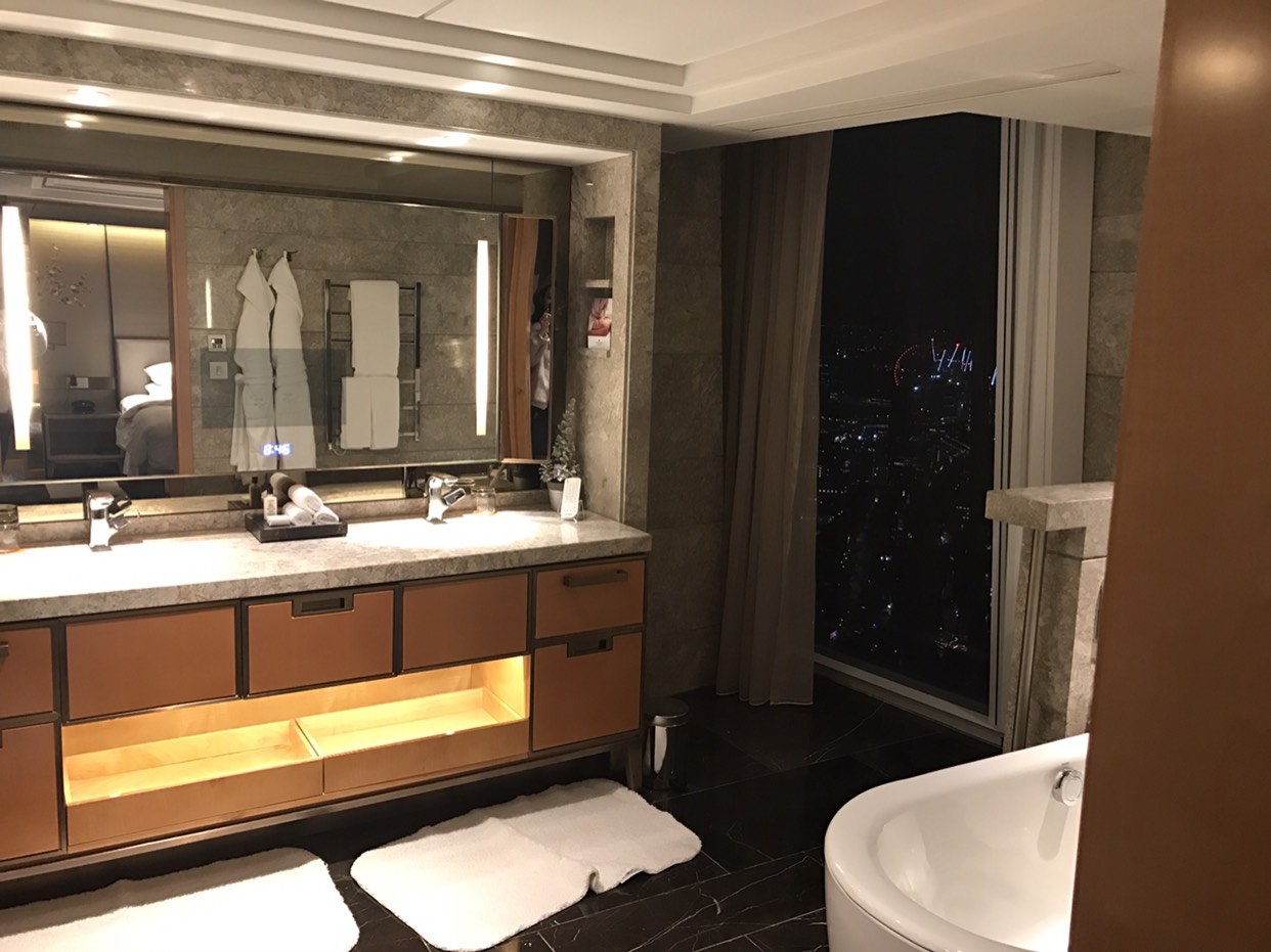 酒店位于35楼以上,52楼以下,优点主要是酒店位置够高,其他施舍配置也还行,没有想象的那么美好,500英镑一个晚上着实太贵了!