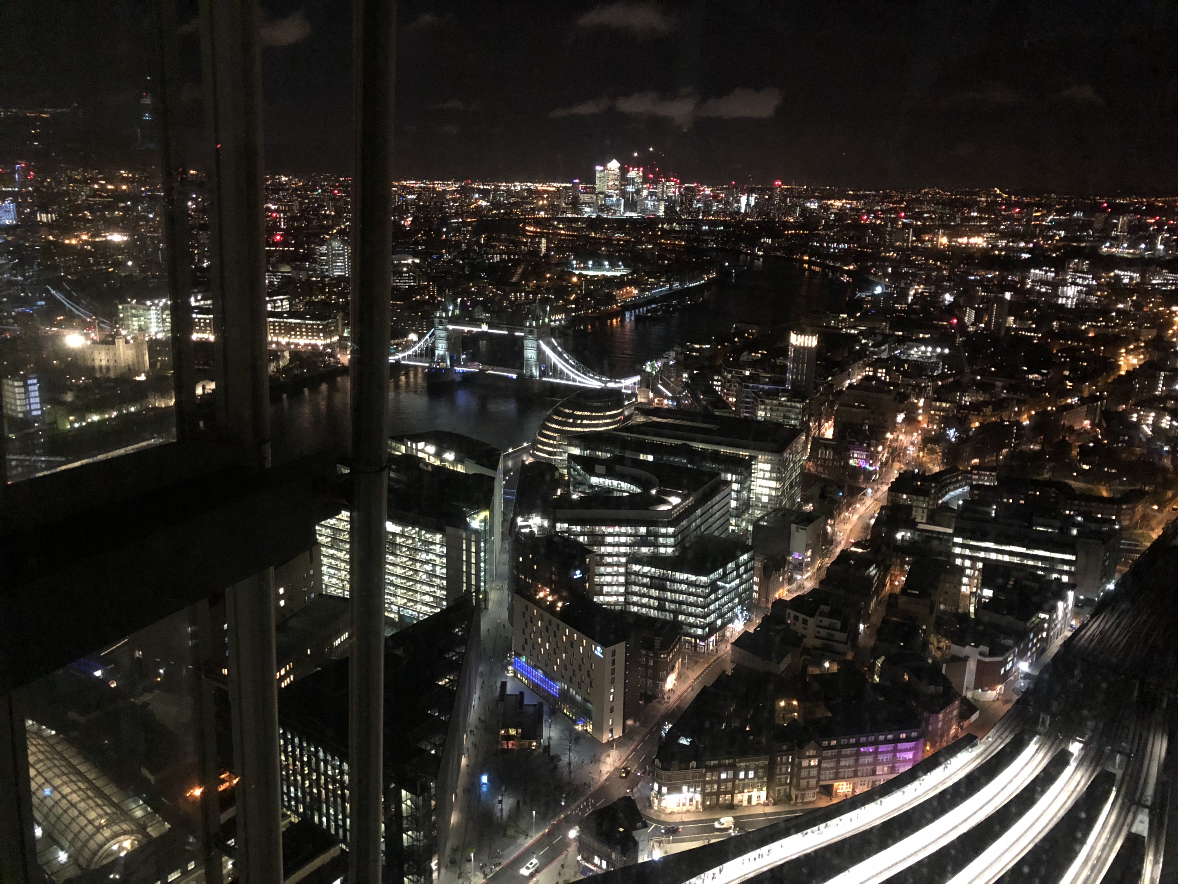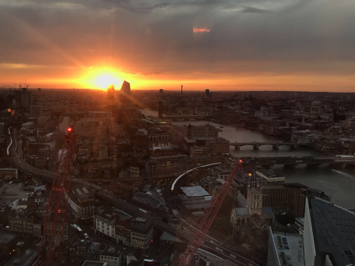 不得不说The Shard的香鸡是旗舰级的,风格装饰秉持一贯风格,配合香薰还是那种熟悉的调调,和上海的静香真的很像;服务略有生涩,但还是很热情周到的。设施方面,因为酒店比较新,总体维护保养不错,就一个衣橱柜门略有移位导致关上后灯还常亮;碎片大厦所在的London Bridge是一个地标性的建筑,楼下就是繁忙的火车、地铁枢纽,离市中心略远,但其实还是挺方便的。虽然订的是含早乞丐房,分配到了靠近东南角的基础房型看不见泰晤士河,但在41层的位置及大面积的全落地窗房间和浴缸已经是值回近四百胖子的房费了;况且52层的Sky Pool和健身房住客可以随意使用,泳池目测大约十米,虽然比较小,但风景很不错,人也不多,注意的是有开放时间限制;香鸡的餐饮还是不错的,早餐很丰盛,有亚洲特色;最后补一张帝国落日余晖^_^