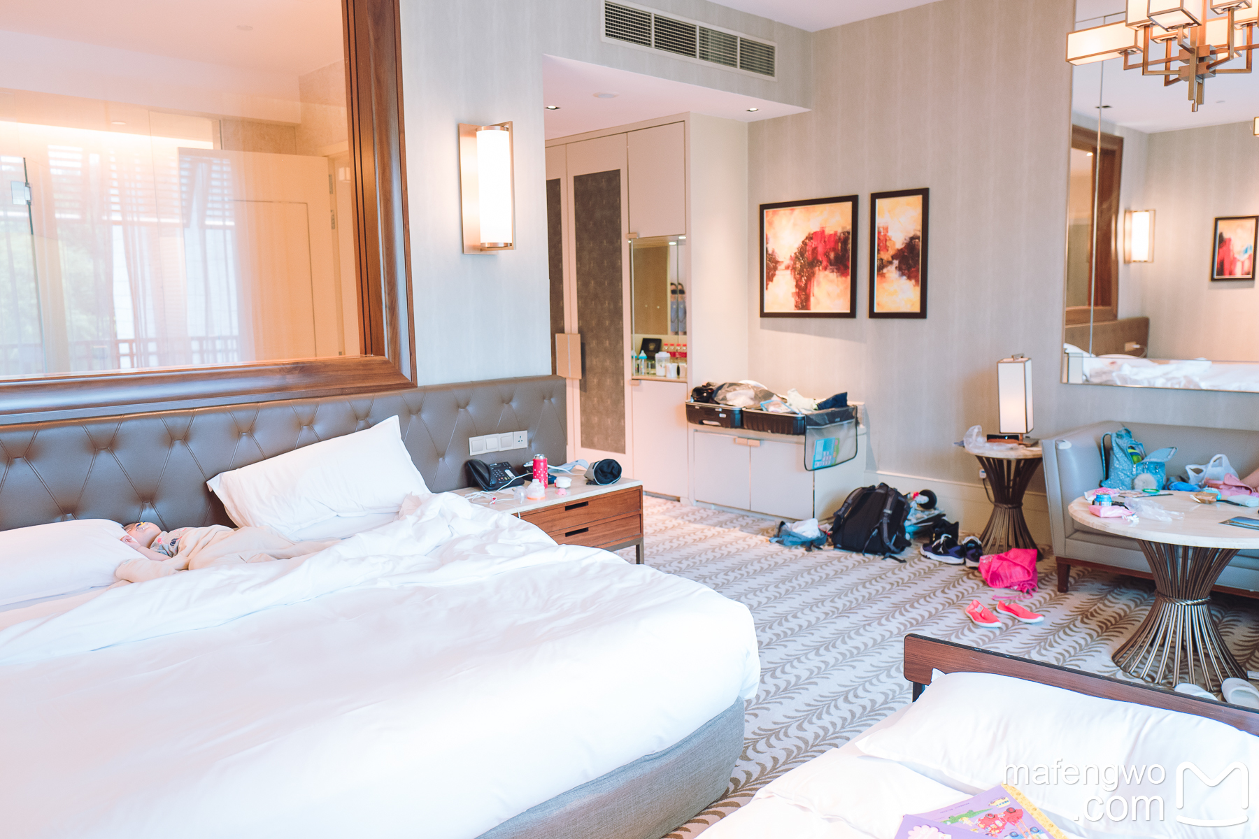 一进房间就被惊艳到,超大超正点,感觉只想泡在房间哪都不想去了,床两大一小足够睡,还有沙发,空间很大,卫生间双水池设计,淋浴和浴缸也是分开的,还有化妆区,阳台面向海面和水上乐园,就是乐园内的水声有点响。酒店位置是稍偏的,水上乐园买好电子票,酒店工作人员会先帮你刷好二维码,然后带你走酒店后门,直接到水上乐园内部,但是有个问题,那就是回来从哪回,当时我想着酒店那么近,就直接穿好泳衣带好毛巾去了,中途想拿东西回酒店发现后门锁了进不去,乐园玩好以后也只能从大门绕一大圈回去,后面去玩的人要注意。酒店很棒,适合喜欢安静,对住宿要求高的人,周边没有可以逛的地方,喜欢热闹的人不适合