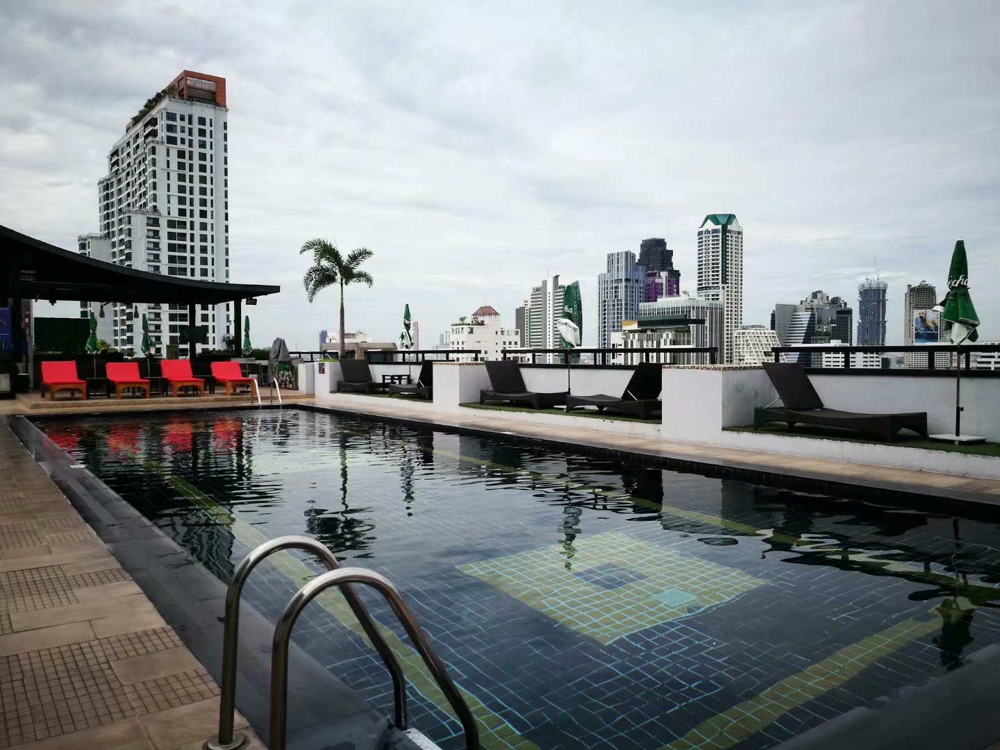 离酒吧街走10分钟,所以晚上很安静。楼顶有泳池,可以看到网红大楼,下次我来曼谷还住这里,到时候跟前台讲在住在这一边。