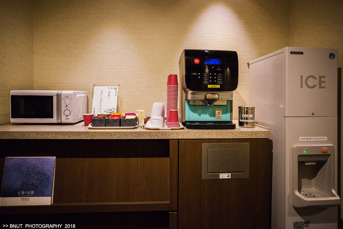 坐落于各大车站前,方便旅游观光,也十分适合商旅人士。京阪酒店还提供丰富的京都传统料理,可以从饮食中体验到日本文化。我们入住的是最高层的客房,酒店的安保做得非常的到位,在前台办理的时候,服务员已经跟我们解释过卡的用处,当时我还以为只是普通的刷房门,没有太在意。等我出了电梯的时候才反应过来,咦,怎么没有房间的,是不是上错楼层了??原来是酒店在这里还设置了一扇安全门,需要是这层的住户才能刷卡进去,不像别的酒店那样,可以随便窜层。在出电梯的左手边,是一个小水吧,在这里可以泡上一杯茶或是一杯咖啡,坐在靠窗的位置,一边品茶,一边欣赏窗外的夜景,也是一种享受。房间的布置也很用心,而且干净整洁,隔音效果也很好,屋内还有空气净化器。在入住的时候,前台会问你是要吸烟房还是无烟房,你根据自己的需求去跟他们说就行了,反正他们都会尽可能完成你的要求的,服务很到位。对于我这个茶和咖啡的爱好者来说,我最喜欢的莫过于房间的水吧了。除了常规的茶叶,酒店还贴心地提供了胶囊咖啡机和不同口味的胶囊咖啡。房间的冲凉房和厕所是分开的,我还专门尝试了传说很久的日本智能马桶盖,第一用感觉还确实挺新鲜,而且真的很人性化,入住登记的时候,酒店前台还贴心地提供了泡澡的香薰给我们。