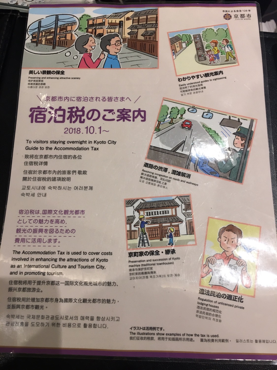 酒店可能位置好的缘故,check in都要排队很久。从10.1后京都还收住宿税,感觉很坑!一晚一人200元(前台说只有京都这个城市收)。马蜂窝提前说明,会好过到了酒店才知道的那种隐形消费的感觉。日本的酒店太小了,这家更是不例外,早上用的护肤品还要每天去前台单独去拿(我是一次性要出来几天的),感觉这家酒店太节约了,能省则省。但房费一点不便宜。