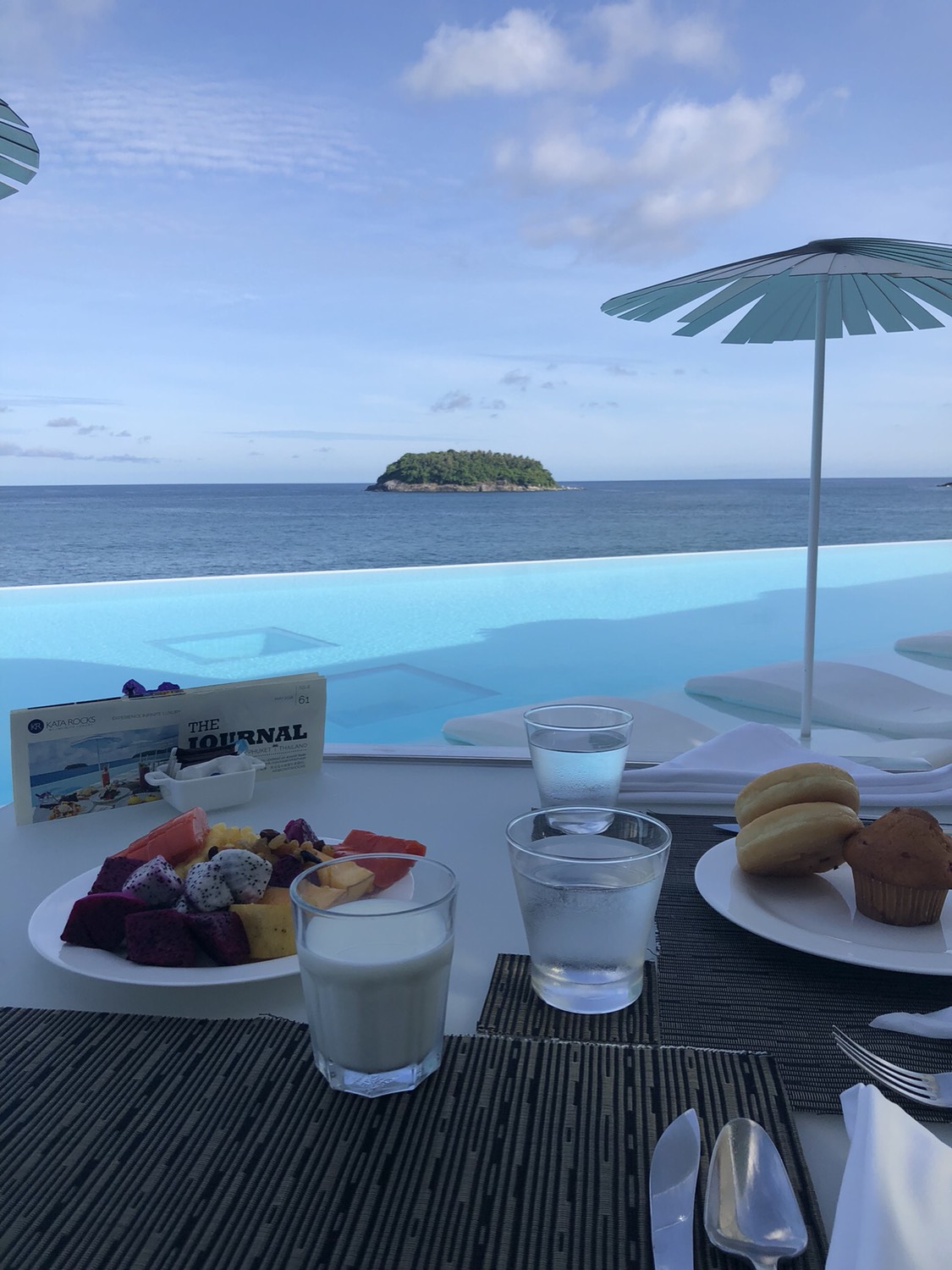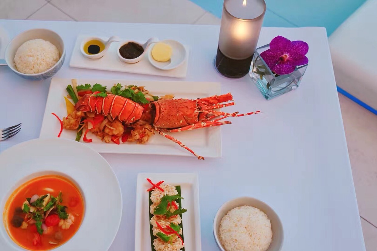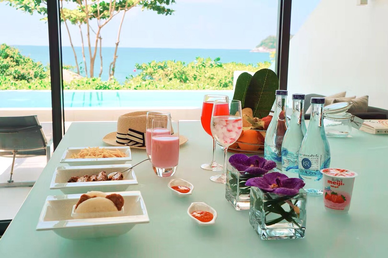 无敌景观,私人无边泳池欣赏到的落日美景超级完美,完全不需要再到其他地方,就在酒店里呆呆的看着安达曼海峡最美的风景尽收眼底。酒店餐厅旁的公共无边泳池风景更加迷人。可能是因为价格比较高,看不到太多人,早餐时也就两三桌一起吃饭的,公共泳池里也几乎没人,早餐种类非常少,热餐几乎只有煎蛋了,老人吃不太惯。别墅建在海边岩石上,进出全需要酒店车接送。房间里空间超大,每个房间都带独立卫生间,之外还有一个小的公共卫生间在客厅旁,不能加床。如果是度蜜月,或是想找个地方静静的休息几天,这里是极好的选择,当然价格也是极好的,需要酌情考虑,而且建议备些粮草到酒店。如果是想出去玩儿,只是晚上回来休息,这里性价比就比较低了。卡塔海滩出门两三百米就到,中国人没有芭东多,欧美人貌似多些。