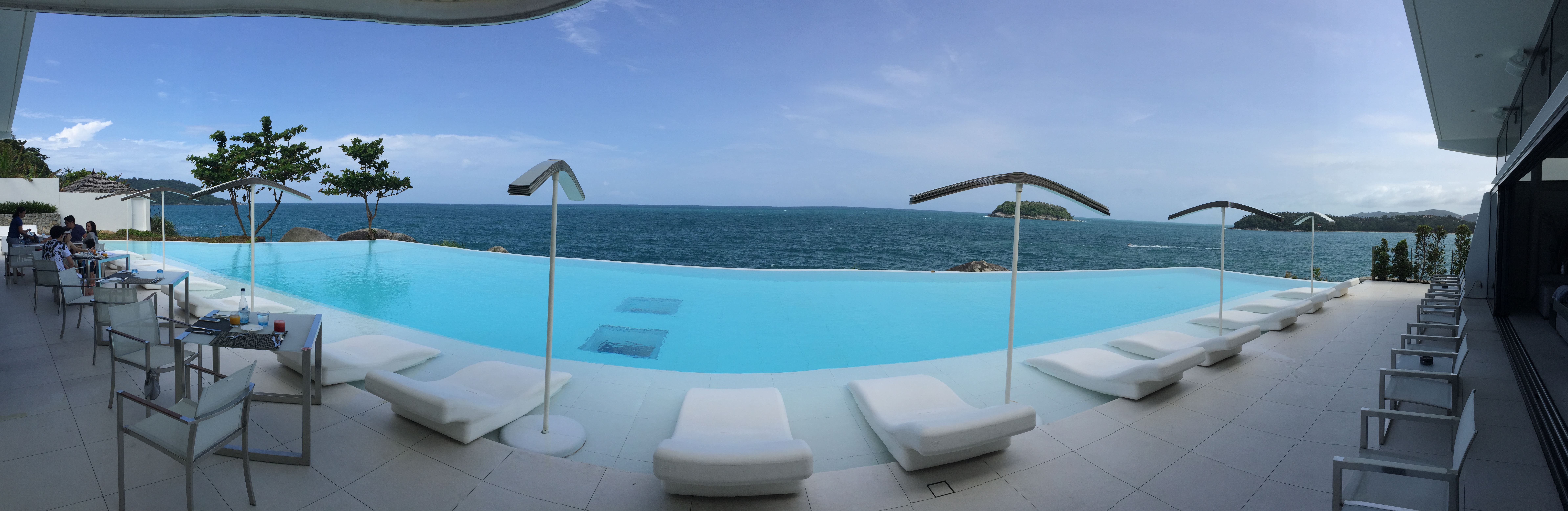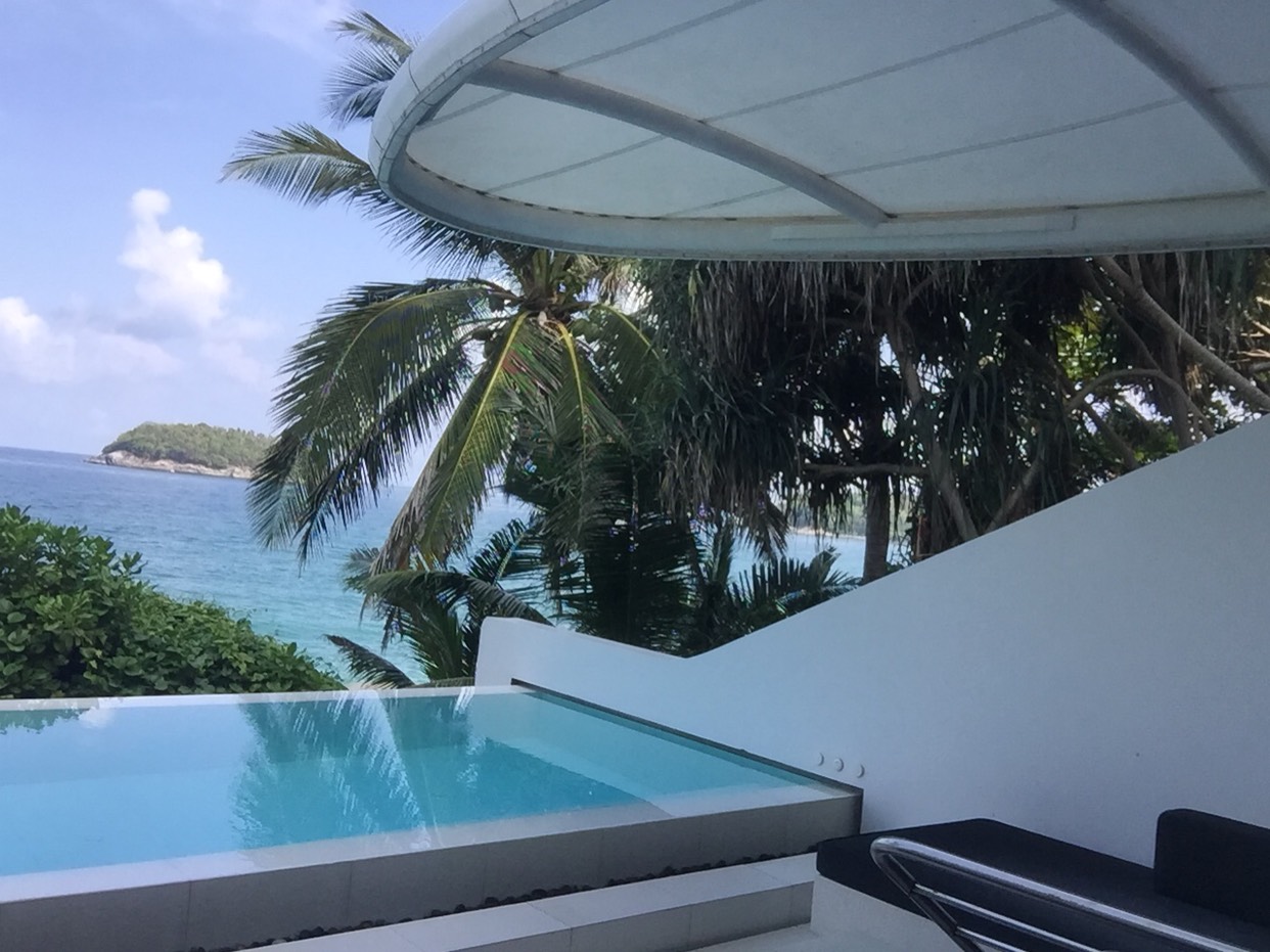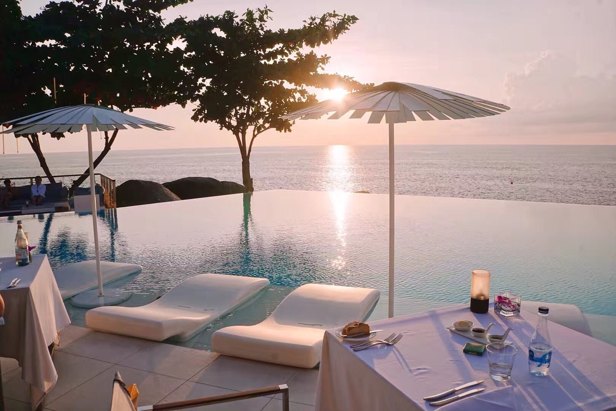 别墅临海。每套房间都有独立无边泳池。又隐私又享受,美不胜收,美到难以用言语形容。可以看艳阳高照带来的灿烂,也可以观看雷阵雨来临的汹涌澎湃。房间设施配置超出预期的齐全。度假最佳选择。在这里住上几天,才叫度假。早餐的餐厅在泳池边上,如画如梦。