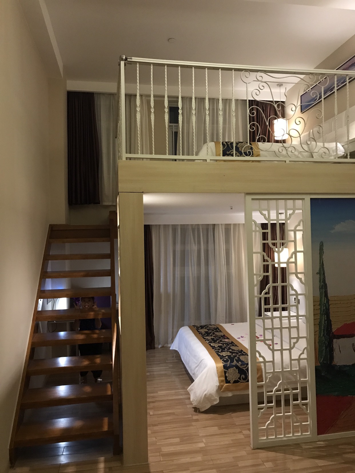 …吃完鸡汤后,驱车半小时就到了我们此行精挑细选的旅店——中青旅山水时尚酒店(咸宁温泉店),选择它家的原因就是性价比高。它家有其独特的复式豪华大床房,一间房里上下两层两张1.8米…