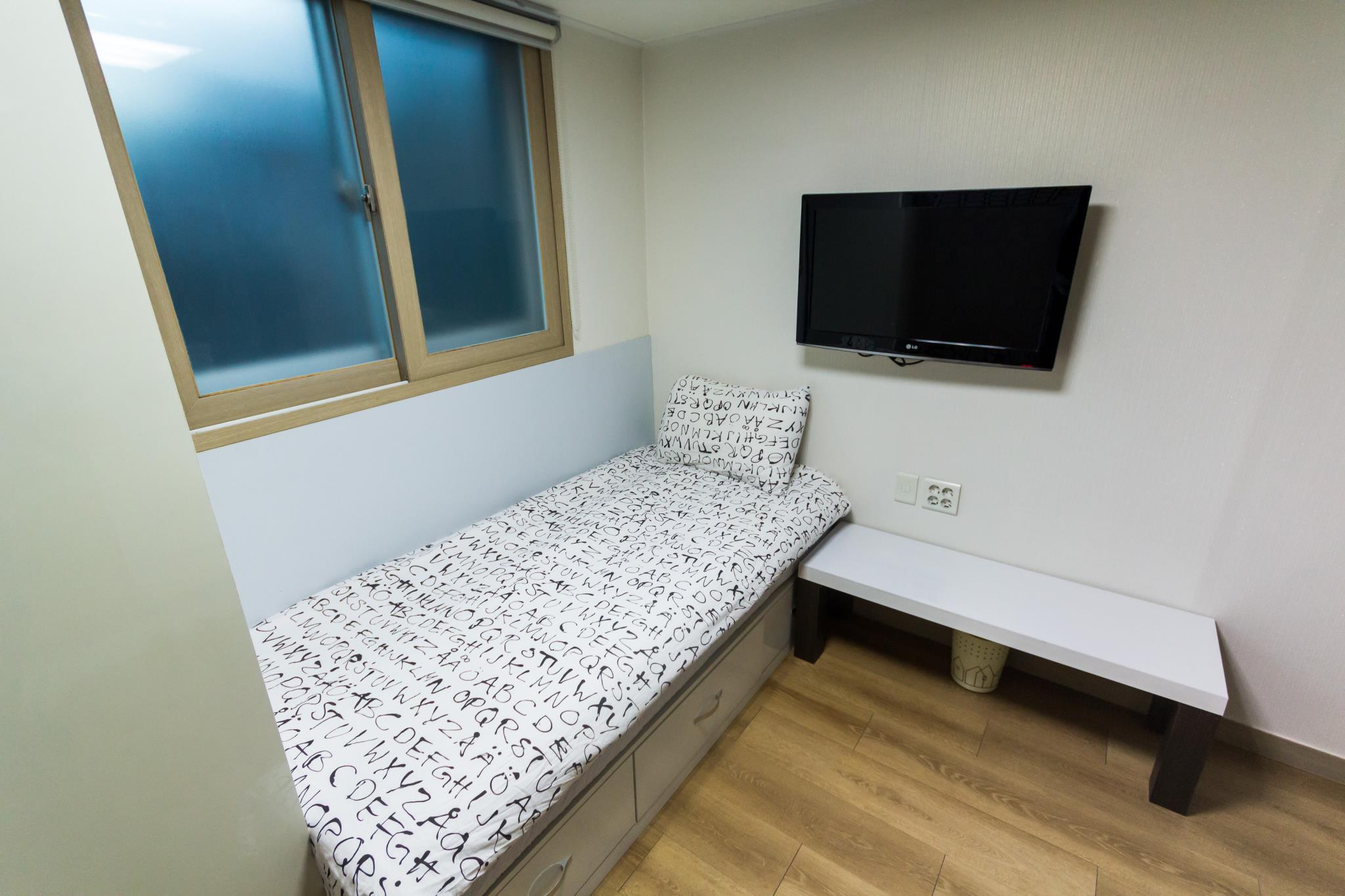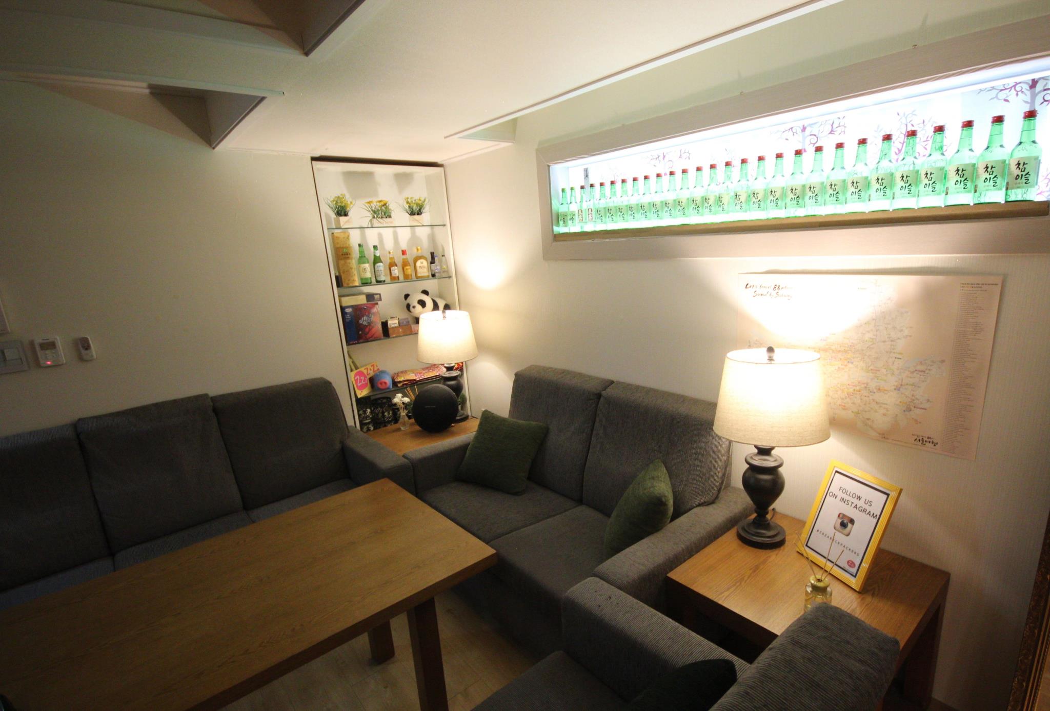 原本订的三人间,结果入住时说地暖坏掉了,换了一个上下床间一个大床间。。位置是2号楼,离得不是太远,特别安静对面是24 guest,周边也有好多青旅。。店里的小伙们都会一些中文,沟通起来也比较方便,有需要拿起电话按下1很快就到。。住的101和103,隔音不是很好,晚上在小饭厅说话吃东西听的很清楚,早晨睡醒也能听到别的屋打呼噜的声音。103大床间相对大一些,不过打开箱子也没多少空间走人。。周边也有很多吃的,去明洞南大门步行很方便。对这次住宿很满意。