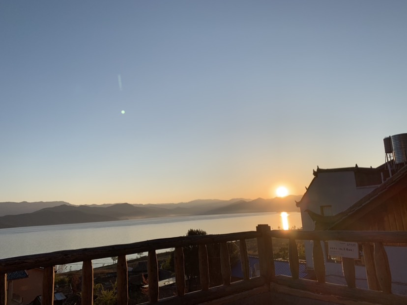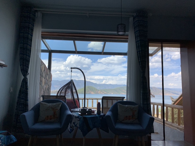 2.我们定的是二楼湖景,房间带阳台,这个位置可以看到日出。阳台有摇椅,晚上坐着看星空,早上摇着看日出,实在是很惬意。
