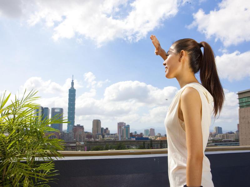 酒店的房间宽敞舒适,各种备品一应俱全。在酒店顶层的露台还可以远眺101大楼。