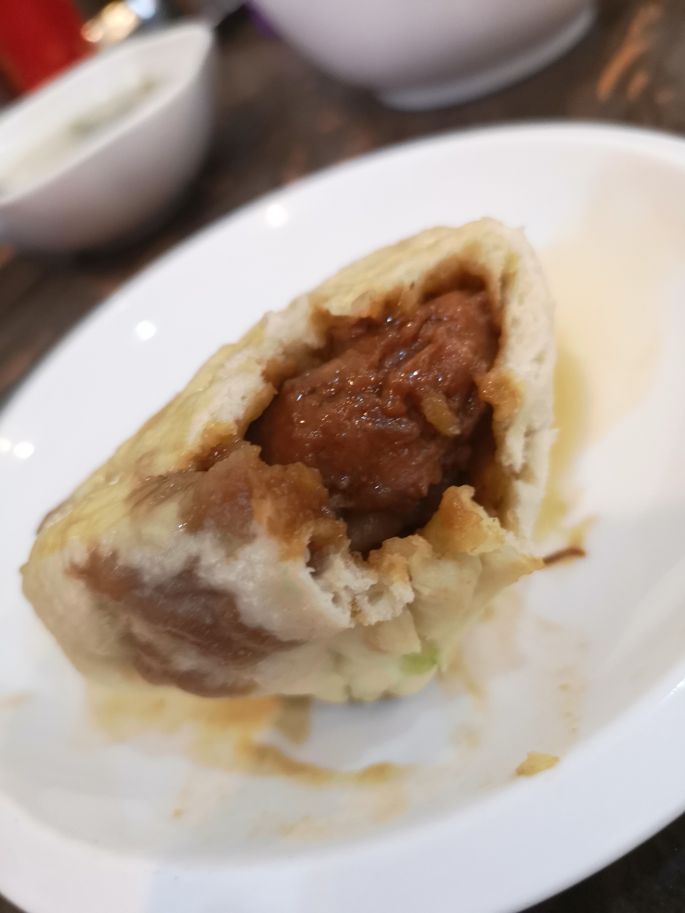 来了传说中的张包铺,这里的包子六个起点,排骨馅里面真的是排骨,也是很新奇了,锅包肉也是让人惊讶,太大一份,三块肉就吃饱了,…所以我们三个人点了八个包子,一份锅包肉,粥和汤,根本就吃不完,量很大。